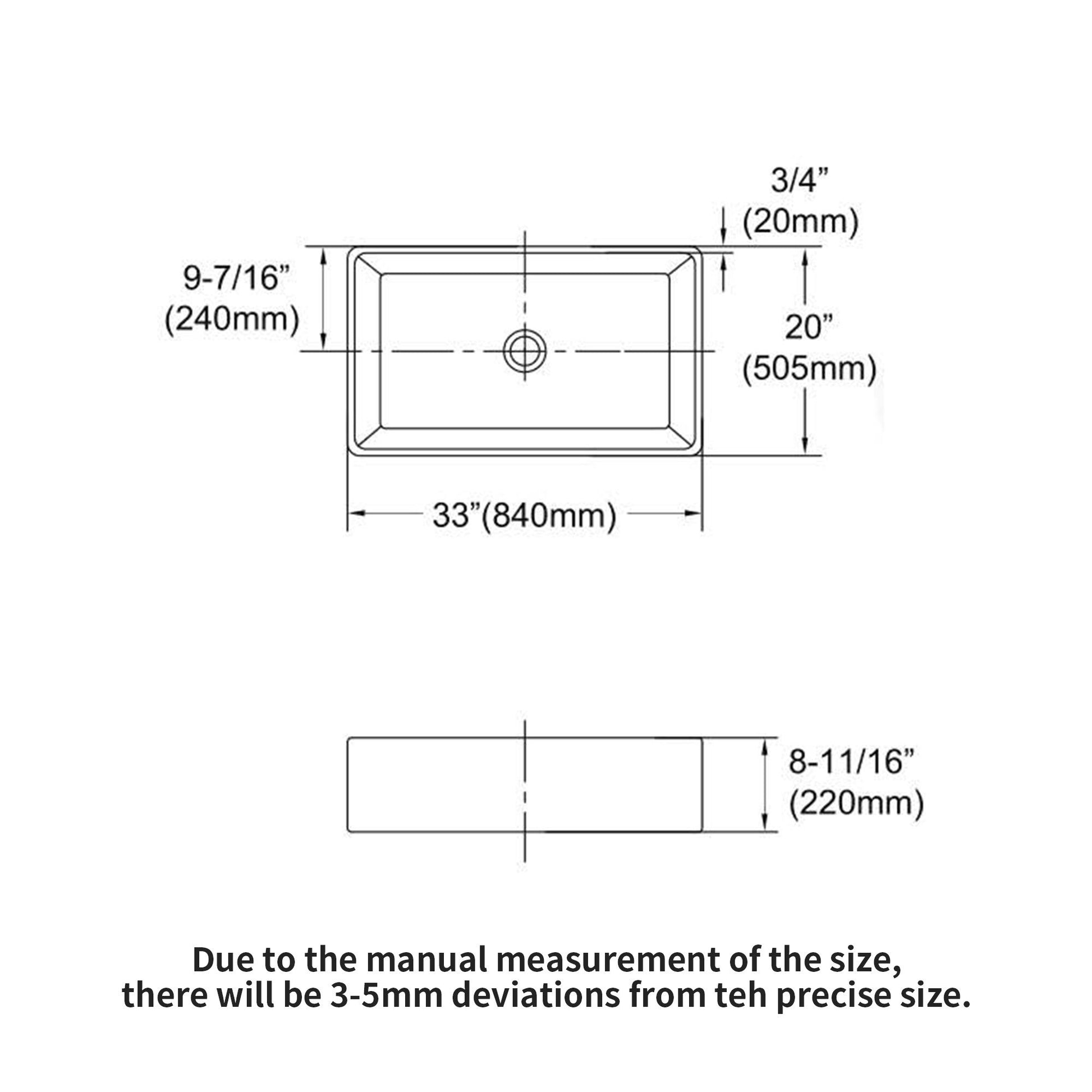 Elegant 33" Farmhouse Sink Apron Front Ceramic Single Bowl Kitchen Basin - White33.0"W x 20.0"D x 10.0"H - 88.18 lb