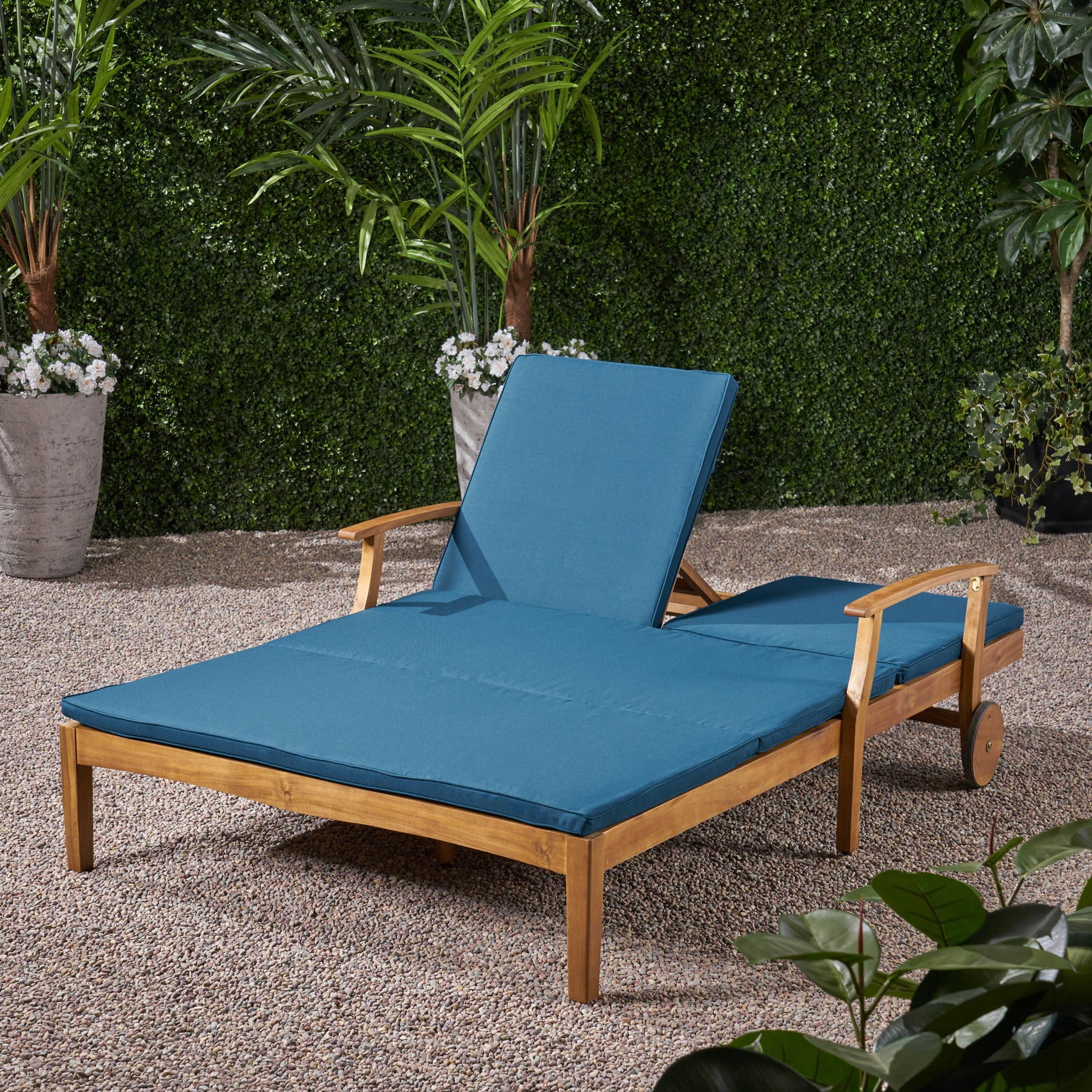 Etherealize - Outdoor Adjustable Double Chaise Lounge With Water Resistant Cushions - Teak / Blue79.0"W x 55.0"D x 22.0"H - 88.18 lb