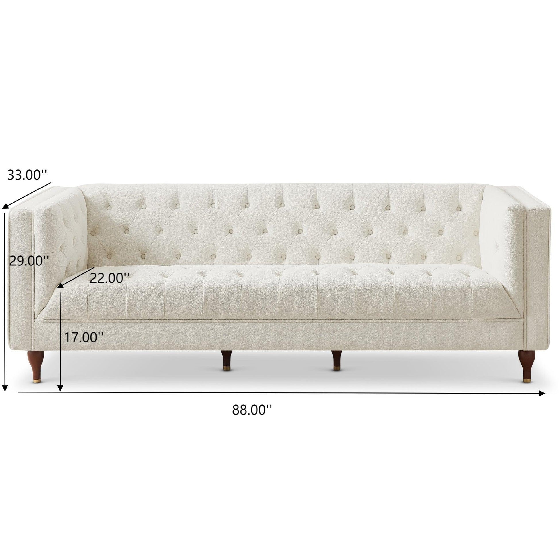 Evelyn - Mid-Century Modern Boucle Luxury Chesterfield Sofa - Ivory White / White33.0"W x 88.0"D x 29.0"H - 109.5 lb