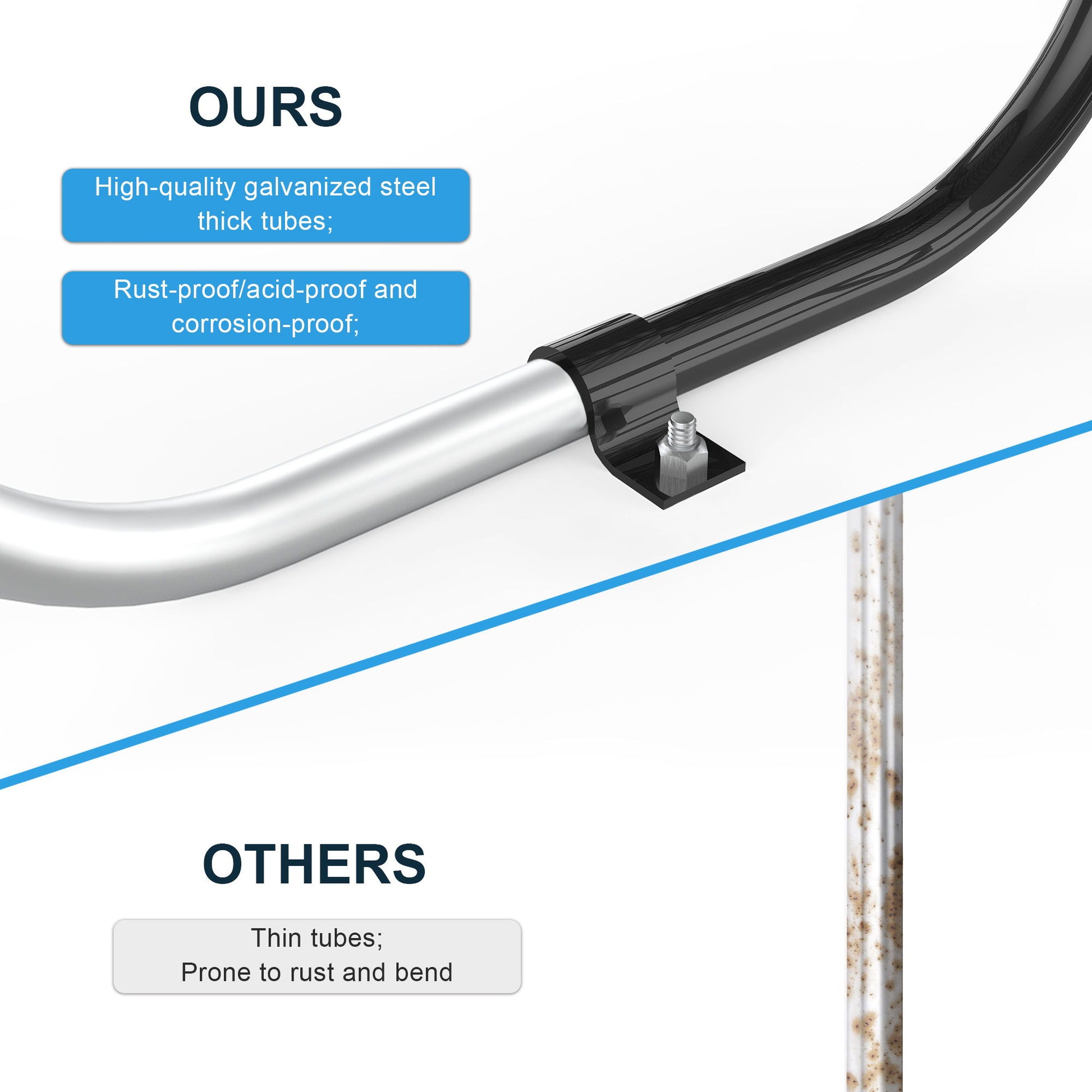Durable Construction: Made with industrial-strength steel and a thermoplastic coating, the square table and chair tops are built to last. The bench legs feature galvanized frames with a heavy-duty powder coat finish, ensuring resilience against harsh weather.
