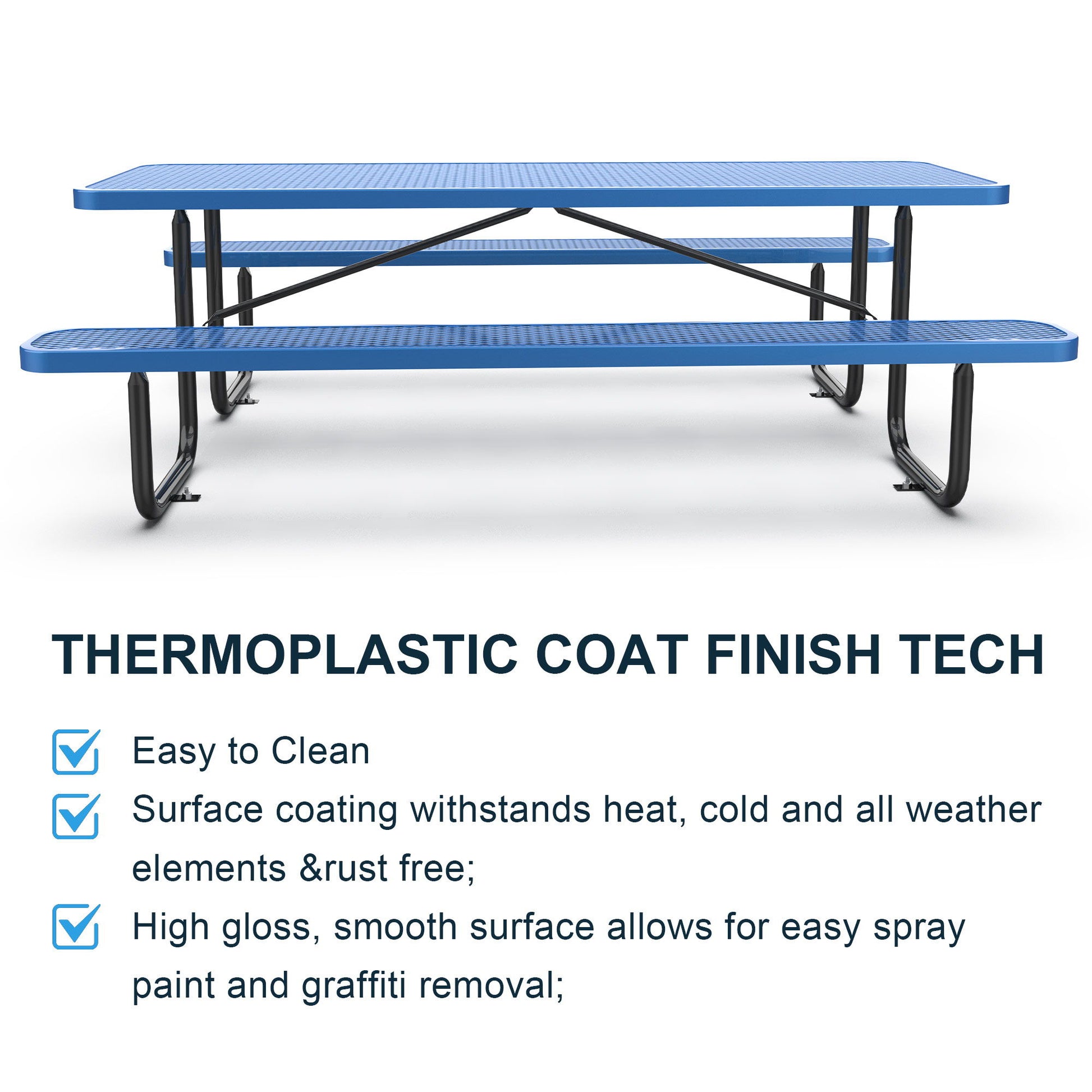 Expanded Metal Rectangular Picnic Table - Blue 96.0"W x 66.9"D x 30.5"H