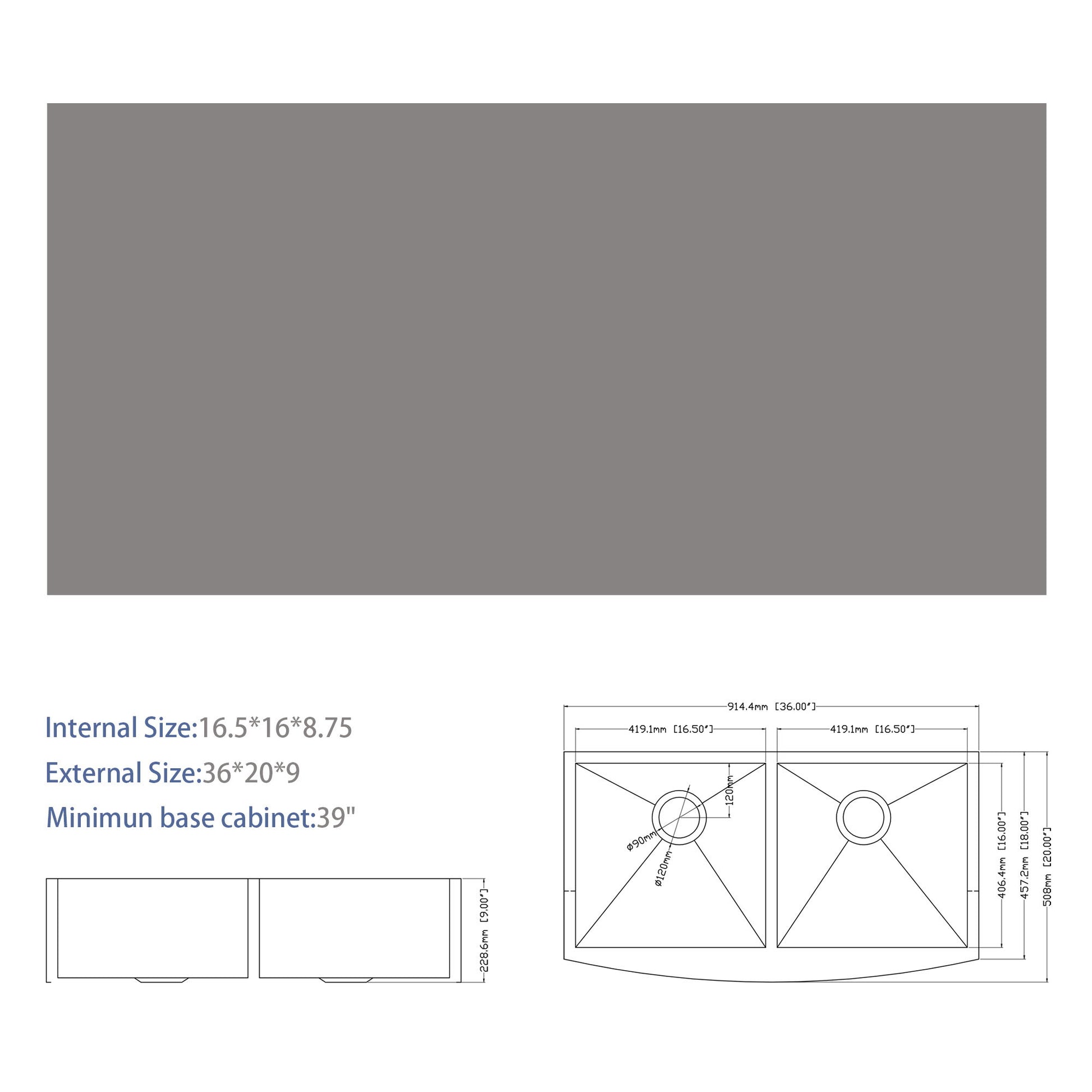 Modern Double Bowl Farmhouse Sink With Apron Front Stainless Steel - Beige33.0"W x 20.0"D x 9.0"H - 32.7 lb
