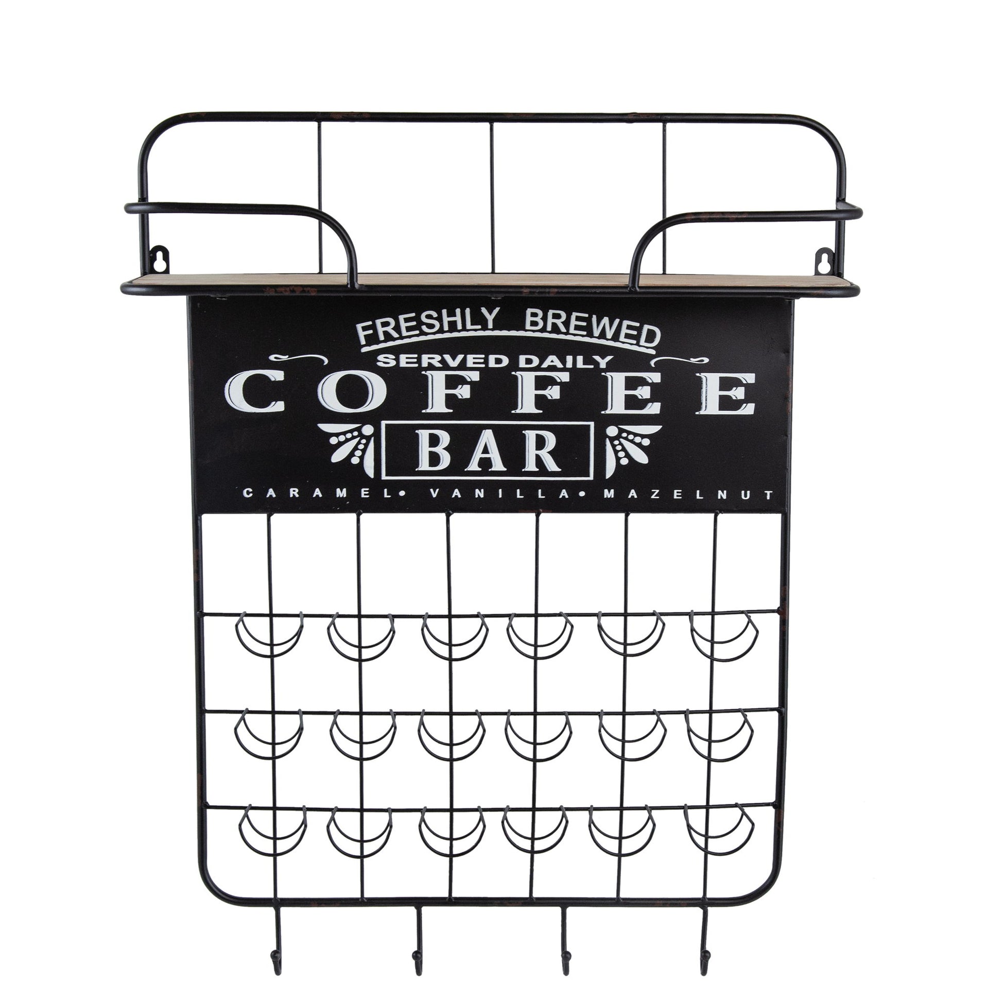 Floating Coffee Bar Shelf With Coffee Pod Holder, Hooks And Storage Shelf - Black22.8"W x 5.5"D x 28.7"H - 4.0 lb