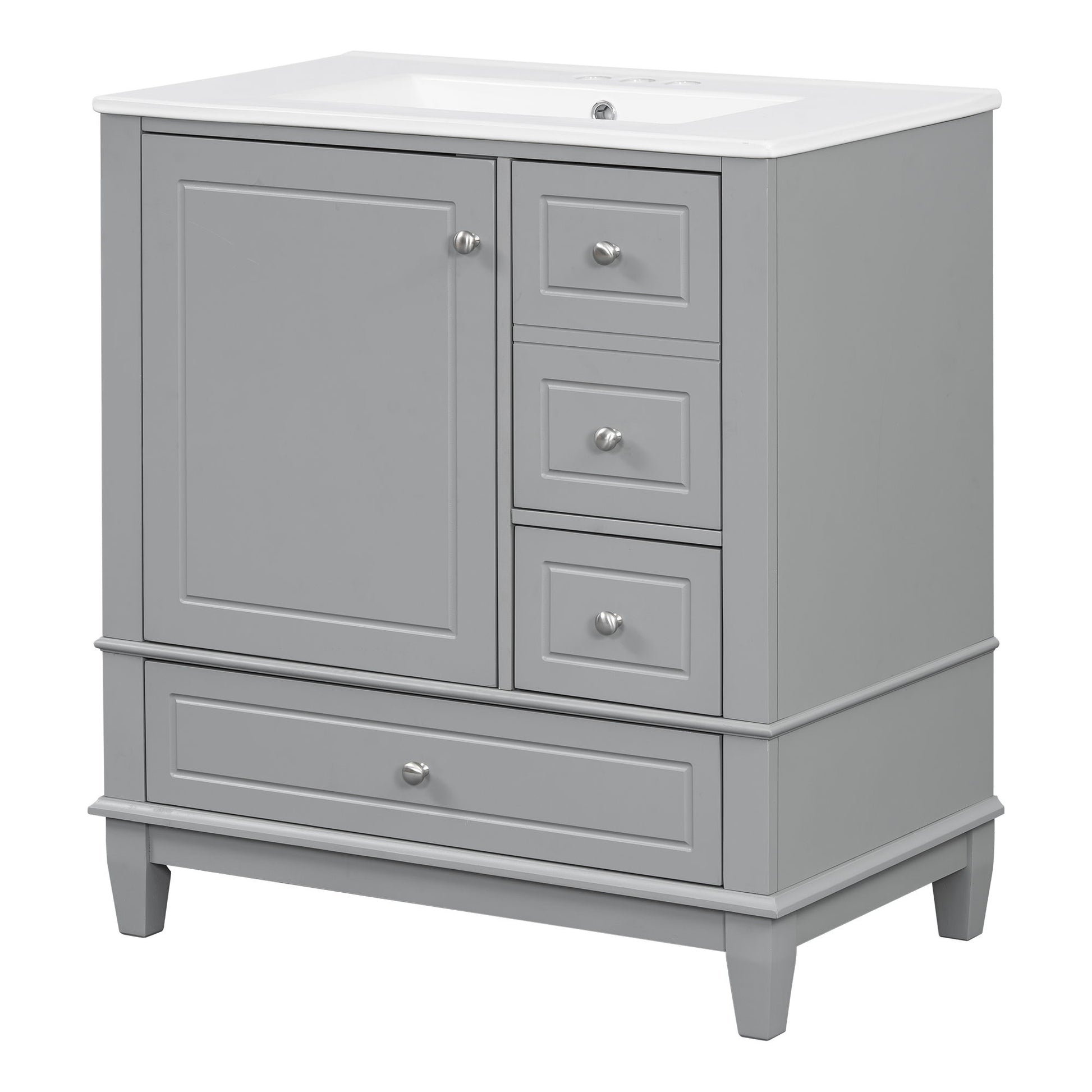 Freestanding Bathroom Vanity With Sink, Soft Close Door, 3 Drawers - Gray30.0"W x 18.3"D x 33.7"H - 99.22 lb