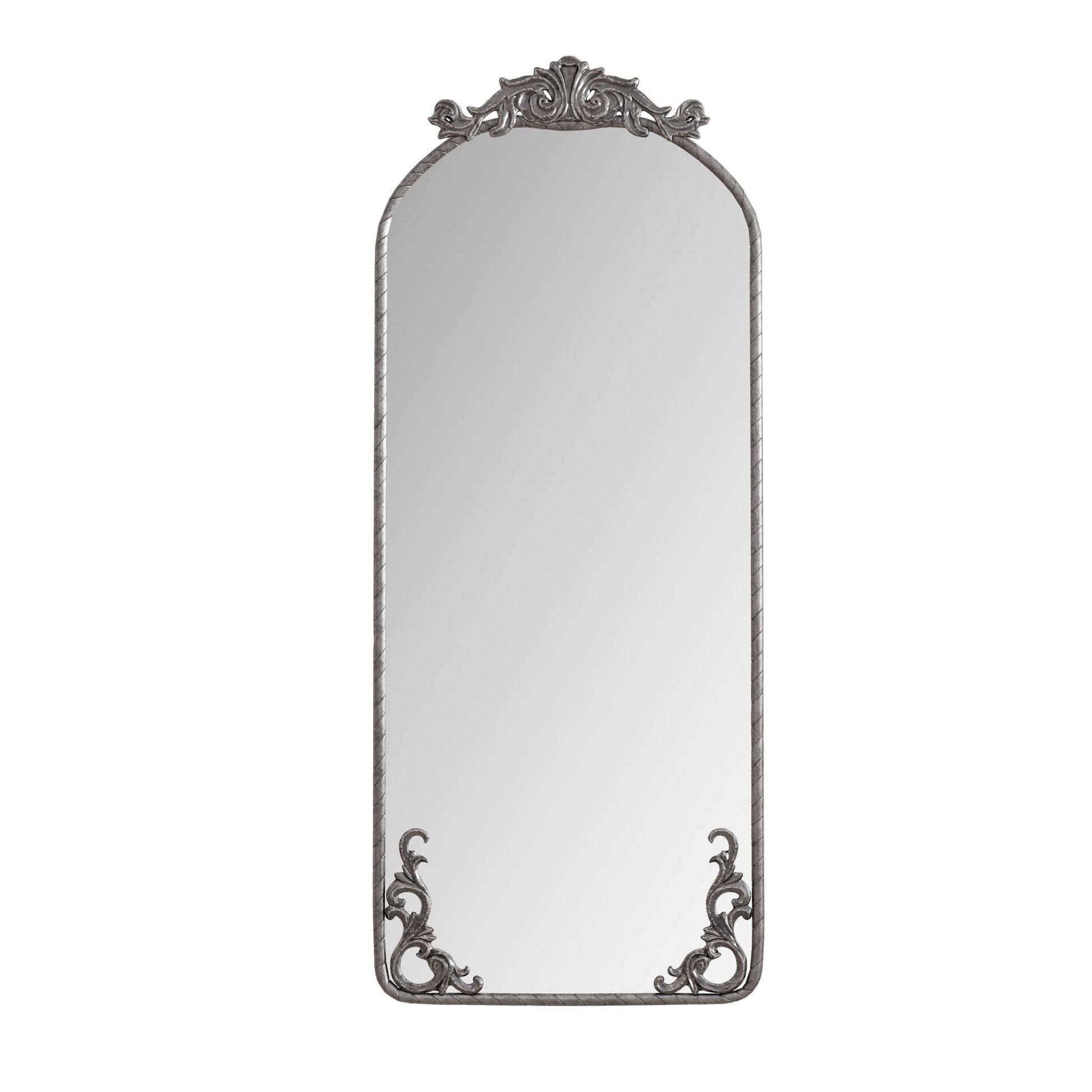 Arched Full Body Mirror With Vintage Carved Applique - Antique Silver24.0"W x 1.18"D x 58.0"H - 23.15 lb