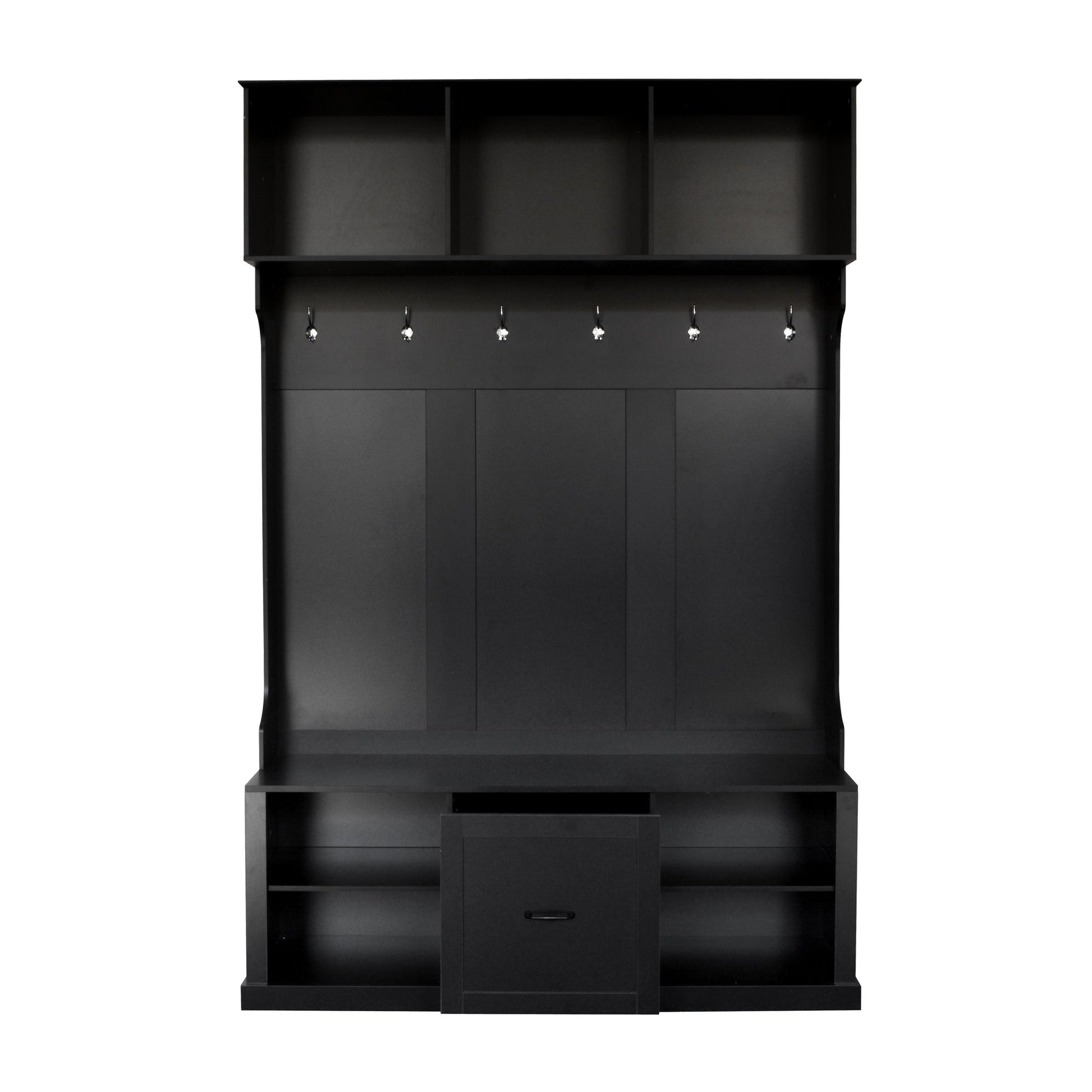 Hall Tree With 6 Hooks, Coat Hanger, Entryway Bench, 3 In 1 Design, A Spacious Drawer For Entrance, Living Room - Black57.0"W x 17.3"D x 85.0"H - 126.87 lb