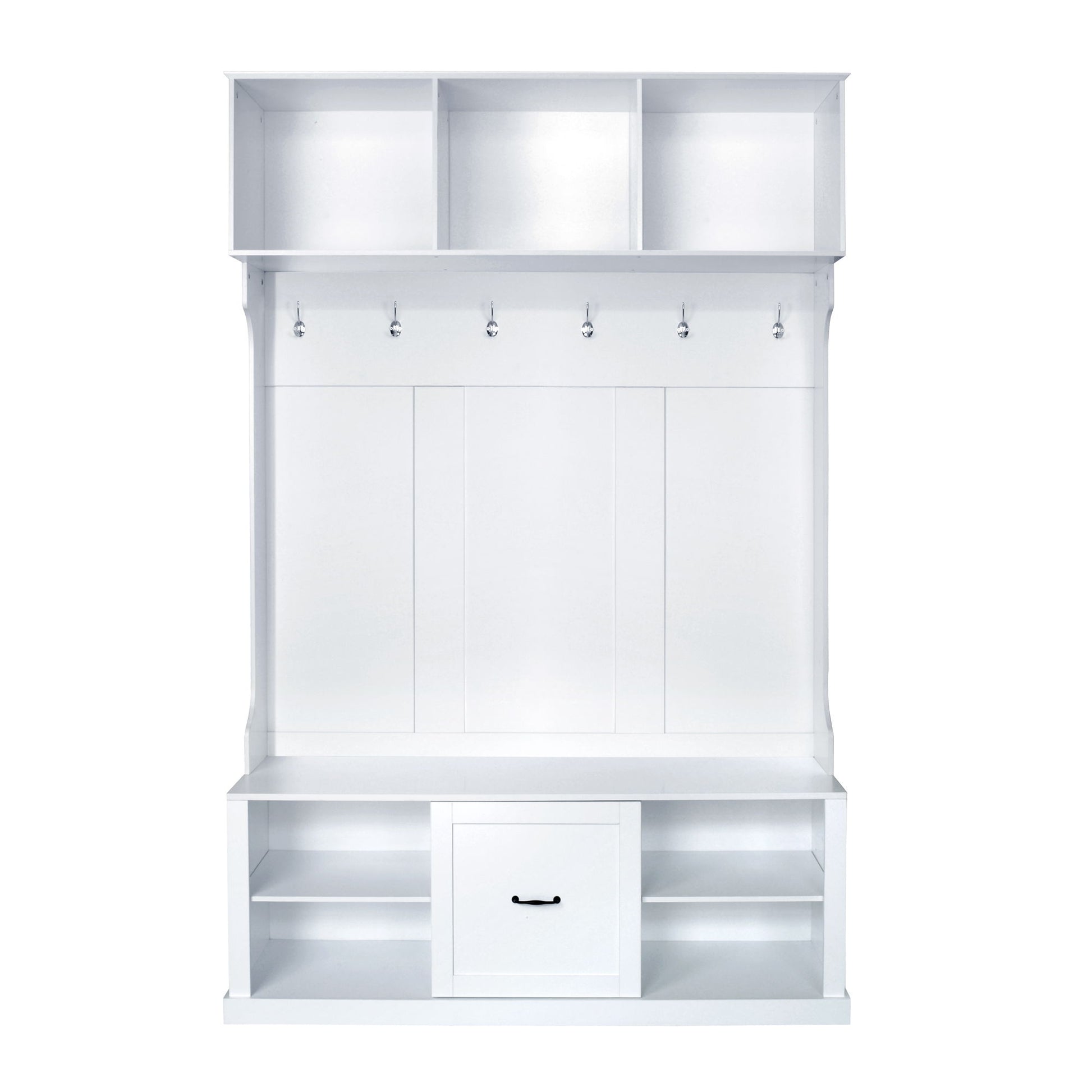 Hall Tree With 6 Hooks, Coat Hanger, Entryway Bench, 3 In 1 Design, A Spacious Drawer For Entrance, Living Room - White57.0"W x 17.3"D x 85.0"H - 126.87 lb