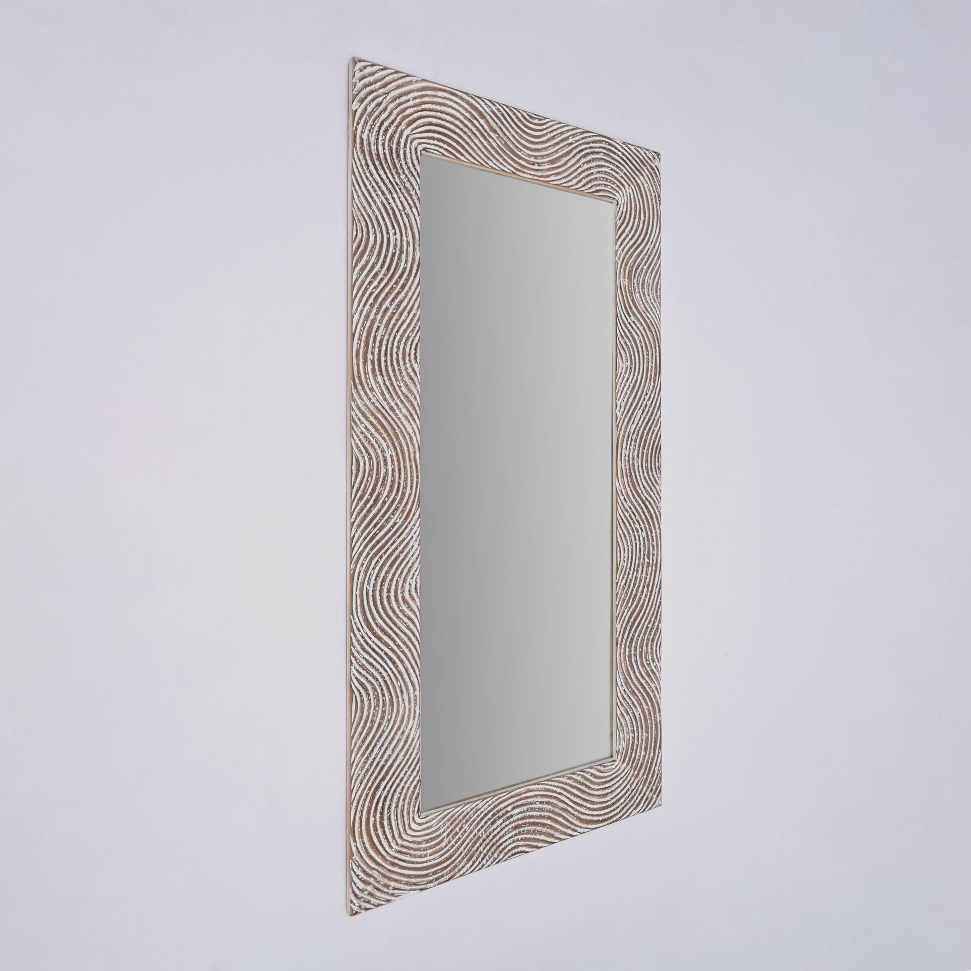 Handcarved Rectangle Mirror Accent With 3mm Glass - Antique White36.0"W x 1.0"D x 72.0"H - 52.8 lb