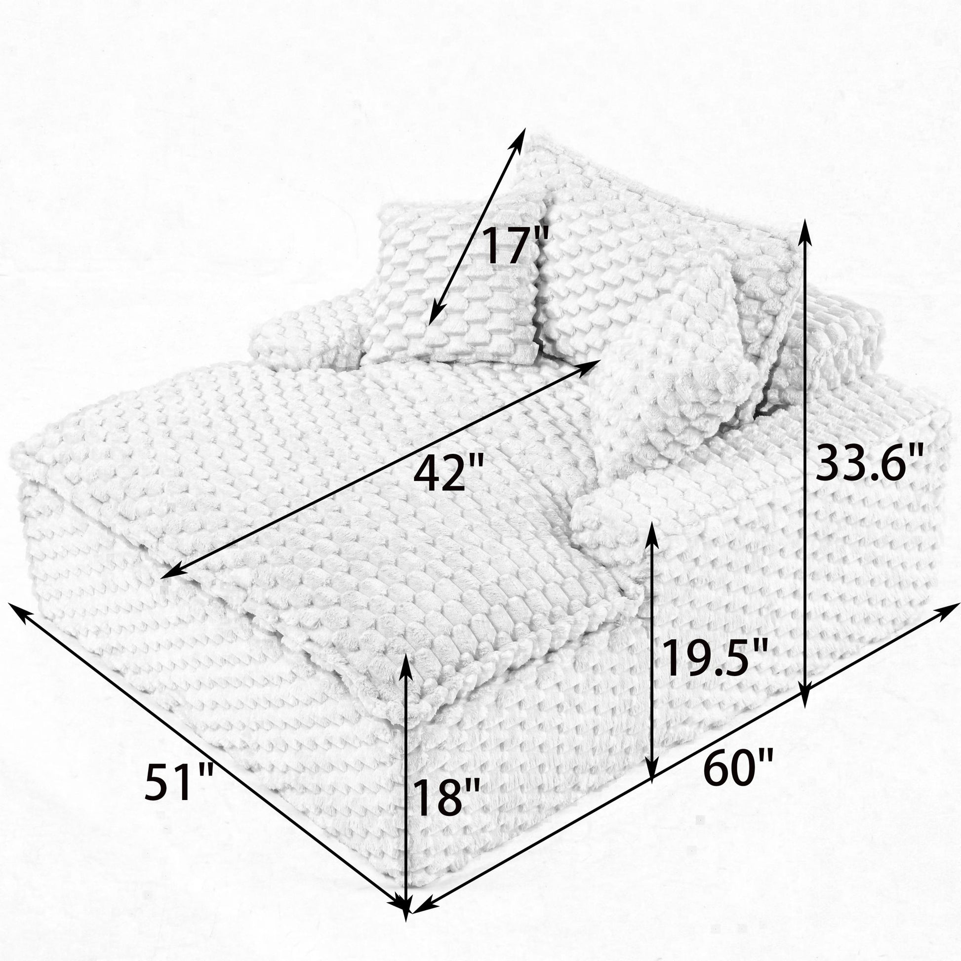 Harbor - Comfortable Luxury Sofa Turtle Fleece Fabric - White51.18"W x 59.84"D x 34.64"H - 72.75 lb
