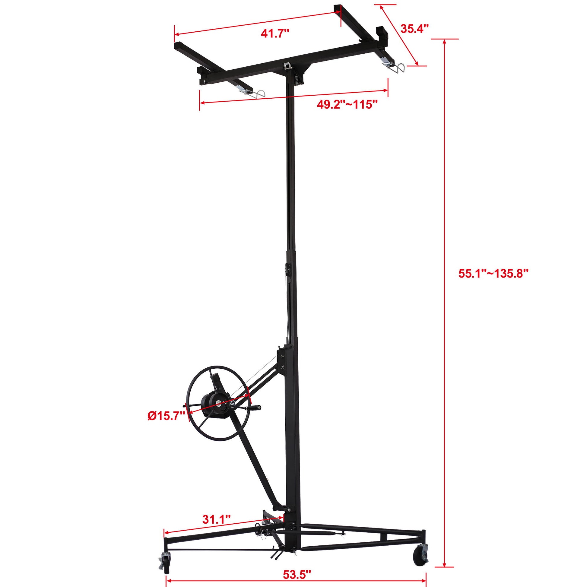 Drywall Panel Hoist Lift With 16Ft Reach, Welded Steel, 150 Lbs Capacity - Black54.0"W x 54.0"D x 74.0"H - 92.0 lb