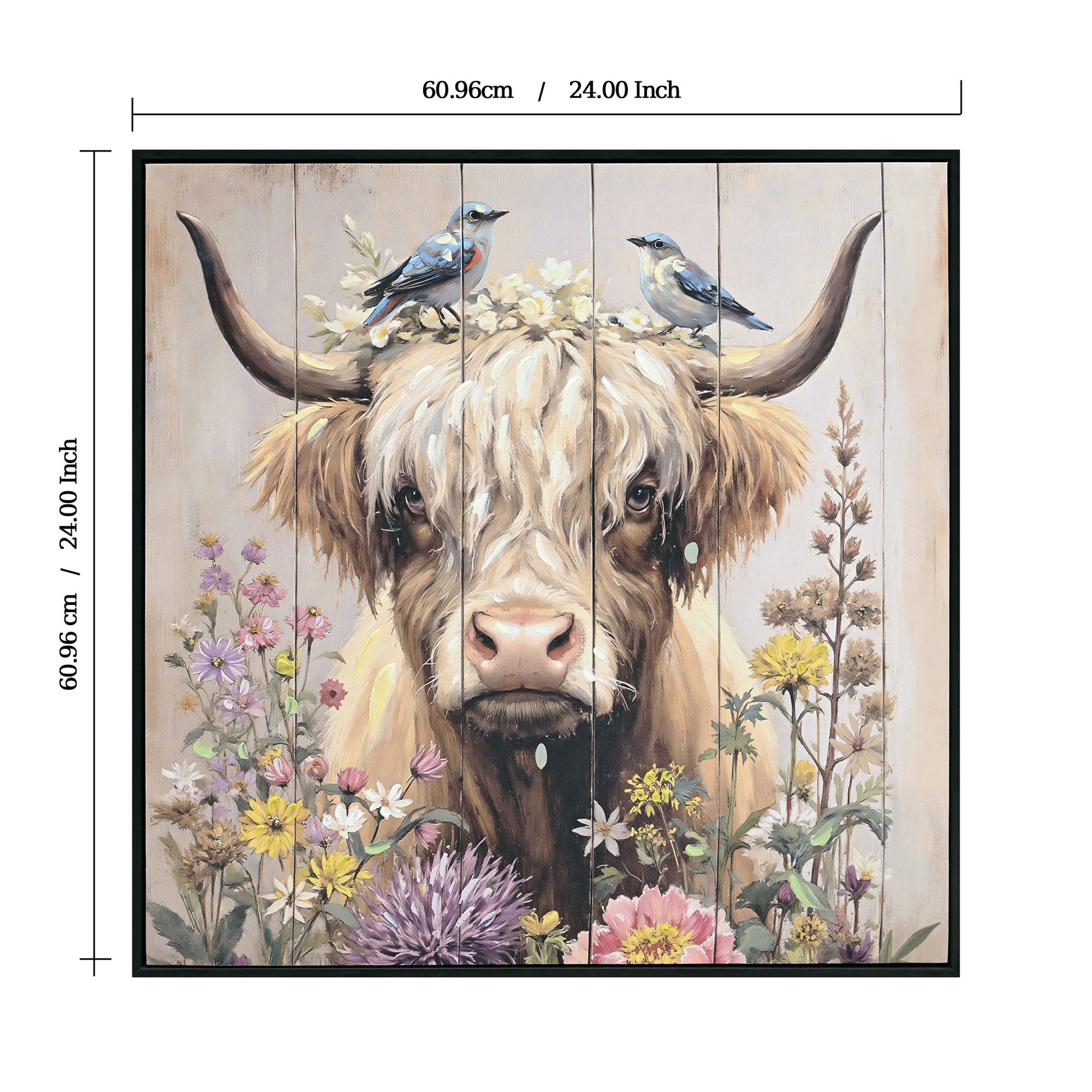 Highland Cow Wall Decor, Picture Canvas Art Print For Living Room - Camel / Brown24.0"W x 24.0"D x 1.2"H - 1.98 lb