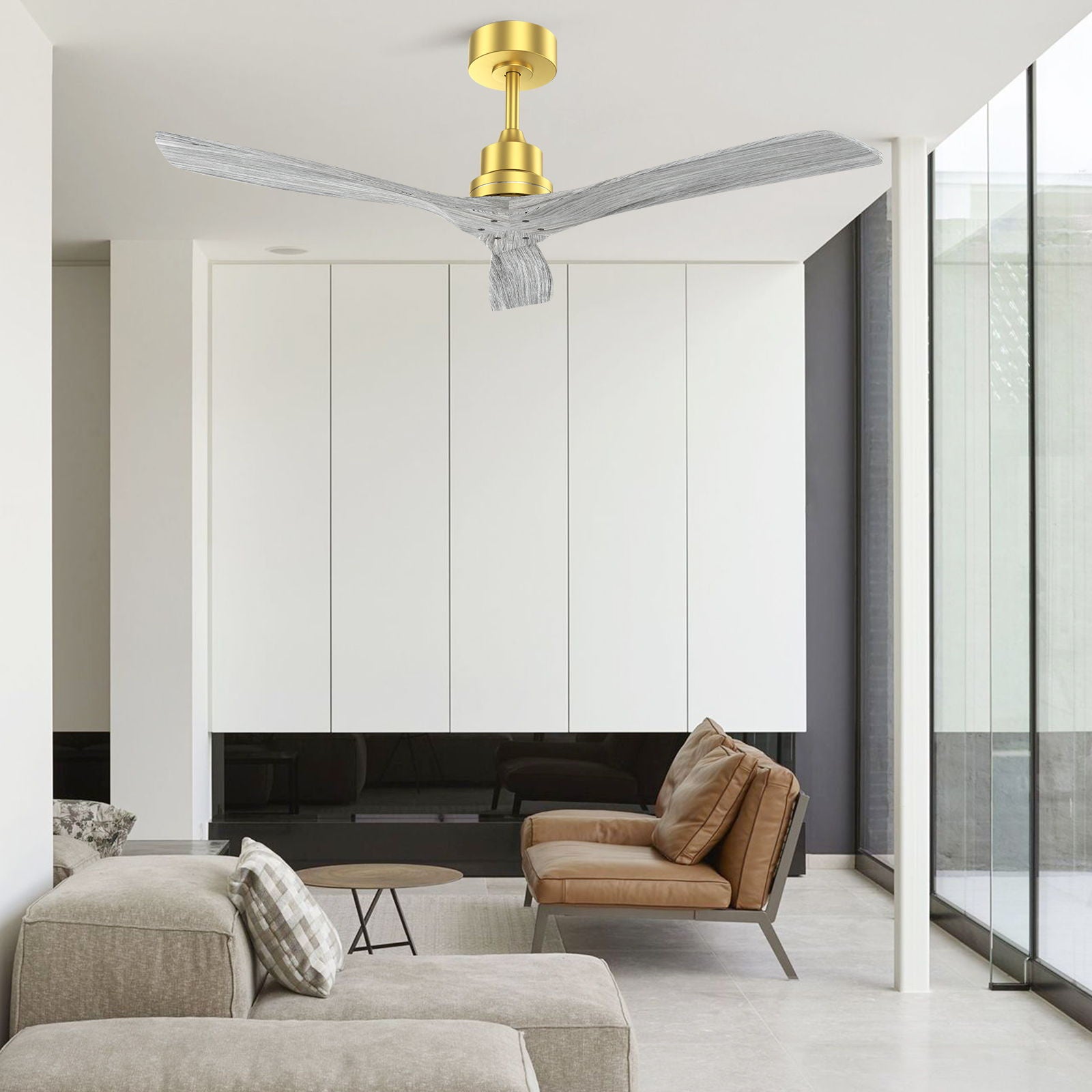 Indoor Ceiling Fan Without Light 3 Solid Wood Blades Remote Control Reversible Dc Motor - Gold52.0"W x 52.0"D x 11.5"H - 11.68 lb
