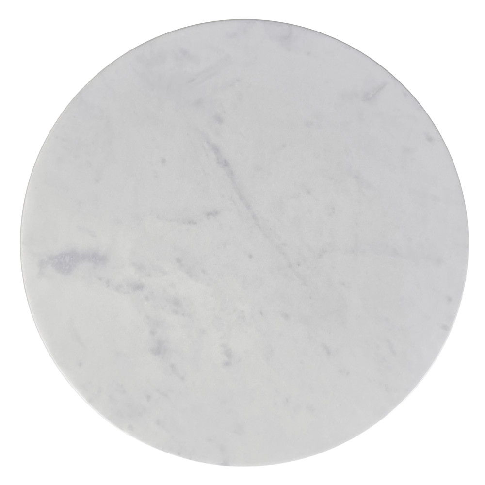 • Features spacious round white marble tabletop, gold powder coated stem and black powder coated pedestal base