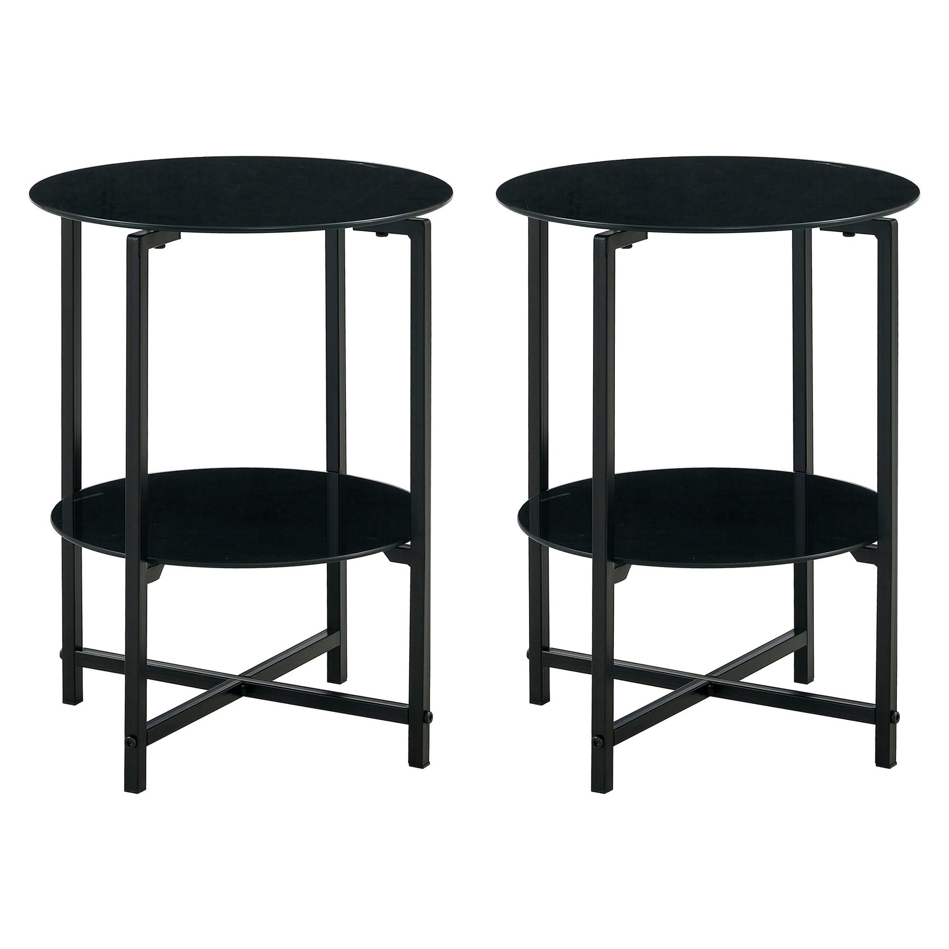 Tempered Glass End Table (Set of 2), Round Coffee Table For Bedroom Living Room Office - Black15.75"W x 15.75"D x 20.87"H - 22.05 lb