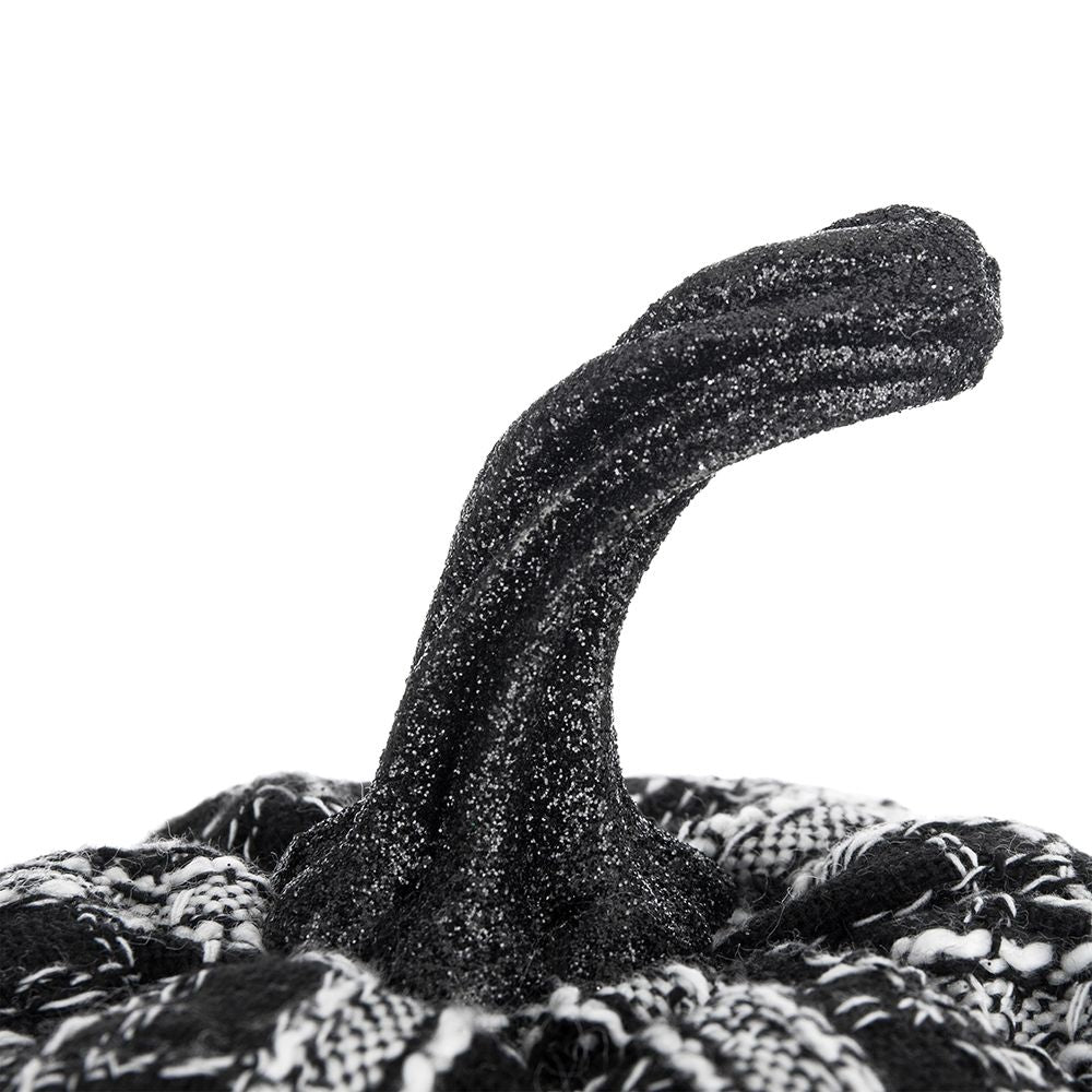 Farmhouse Style: Made from black and white fabric with a knit plaid motif, this pumpkin embodies the farmhouse style, making it ideal for autumn decorations in living rooms and dining rooms.