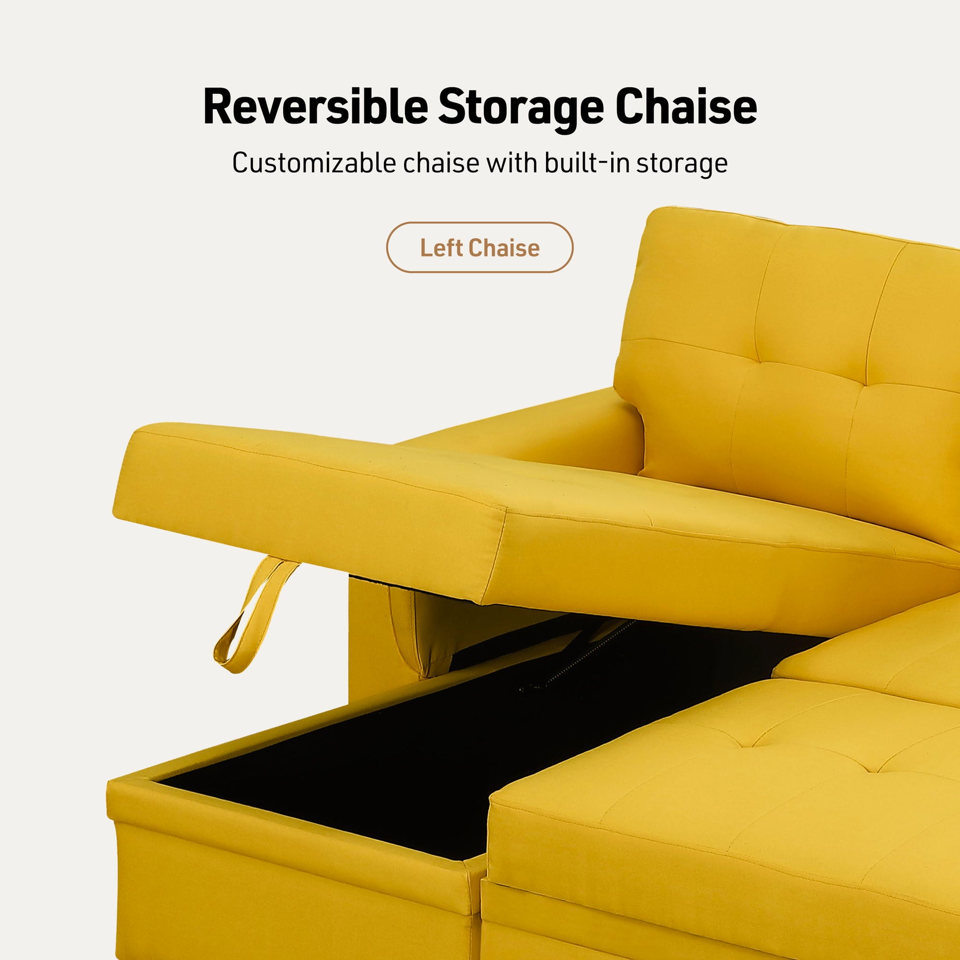 Lucca - Linen Reversible Sleeper Sectional Sofa With Storage Chaise - Yellow54.0"W x 84.0"D x 35.0"H - 209.0 lb