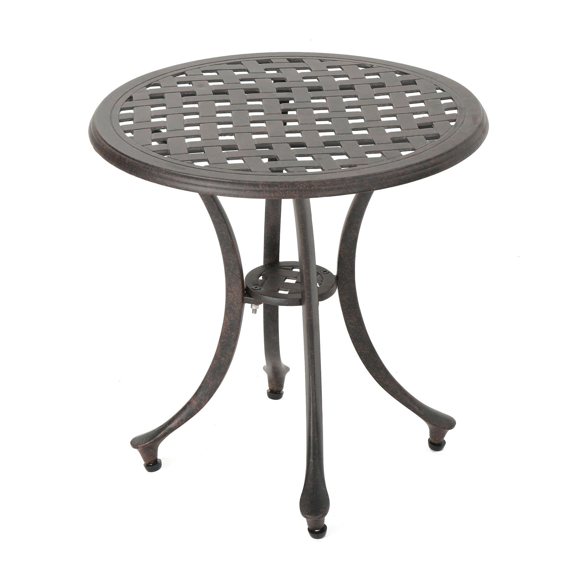 Lunaire - Outdoor Round Cast Aluminum Side Table With Lattice Top And Curved Legs - Bronze19.25"W x 19.25"D x 19.0"H - 8.82 lb