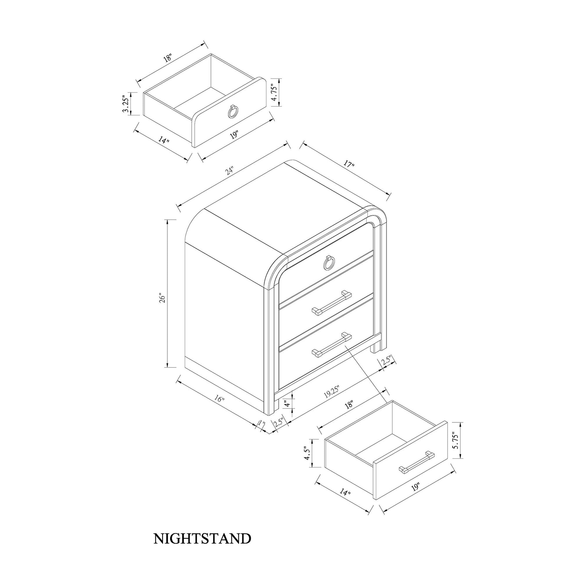 Malco - Nightstand With Spacious Drawer And Gold Metal Fluted Detailing - Black White24.0"W x 17.0"D x 26.0"H - 50.6 lb