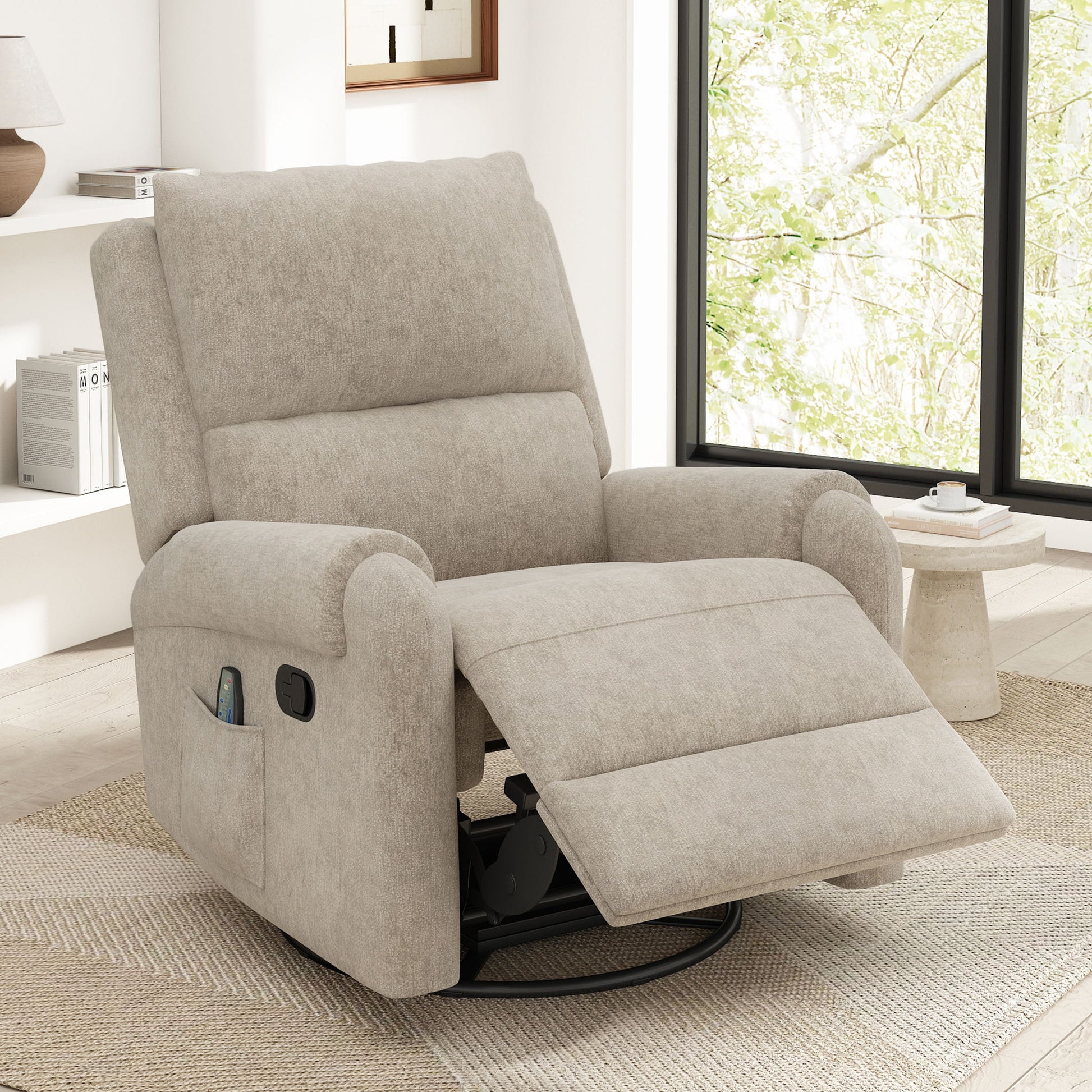 Manual Recliner Massage Chair With Swivel Rocker, 8 Massage Modes, Side Storage Pocket - Oatmeal34.5"W x 38.75"D x 39.5"H - 84.22 lb