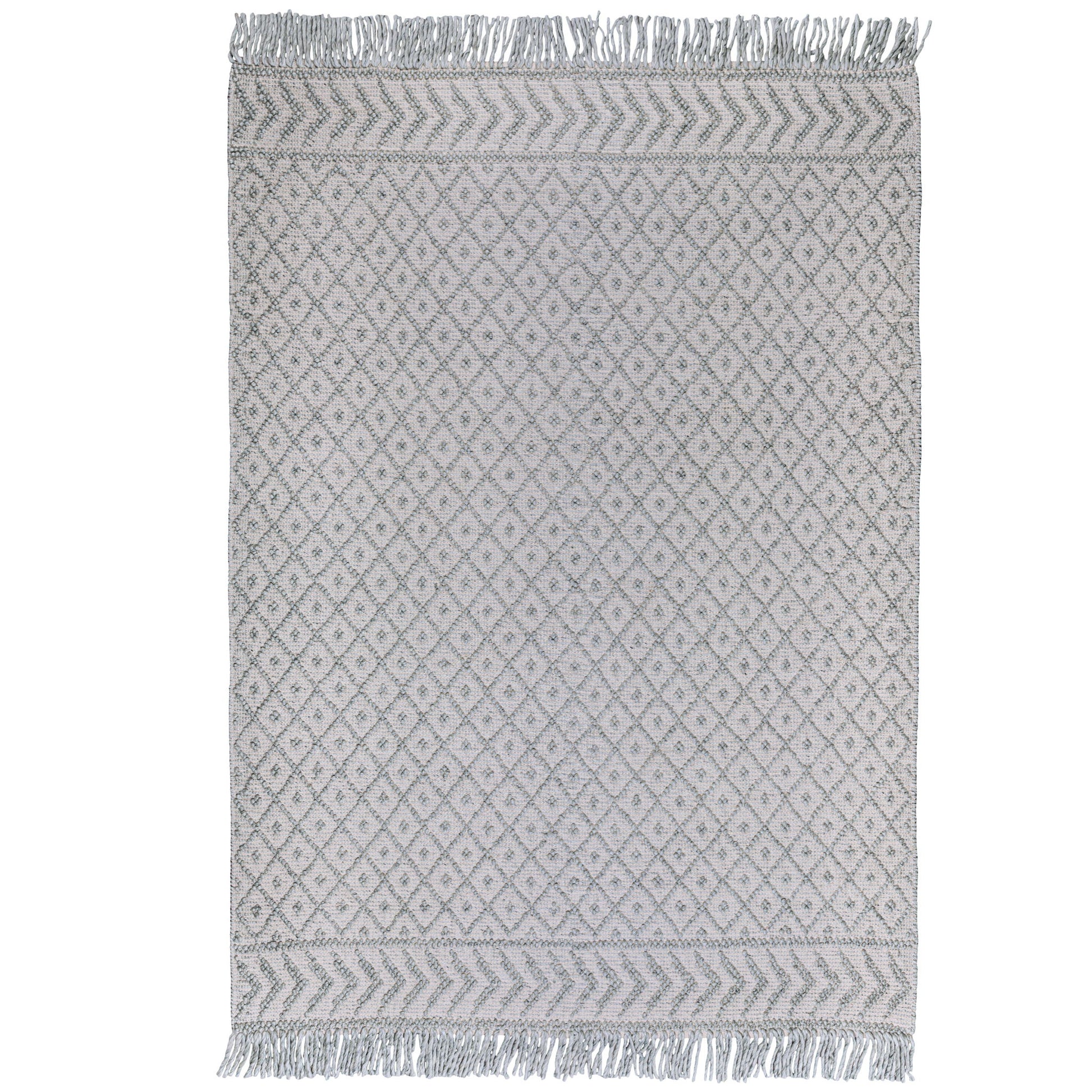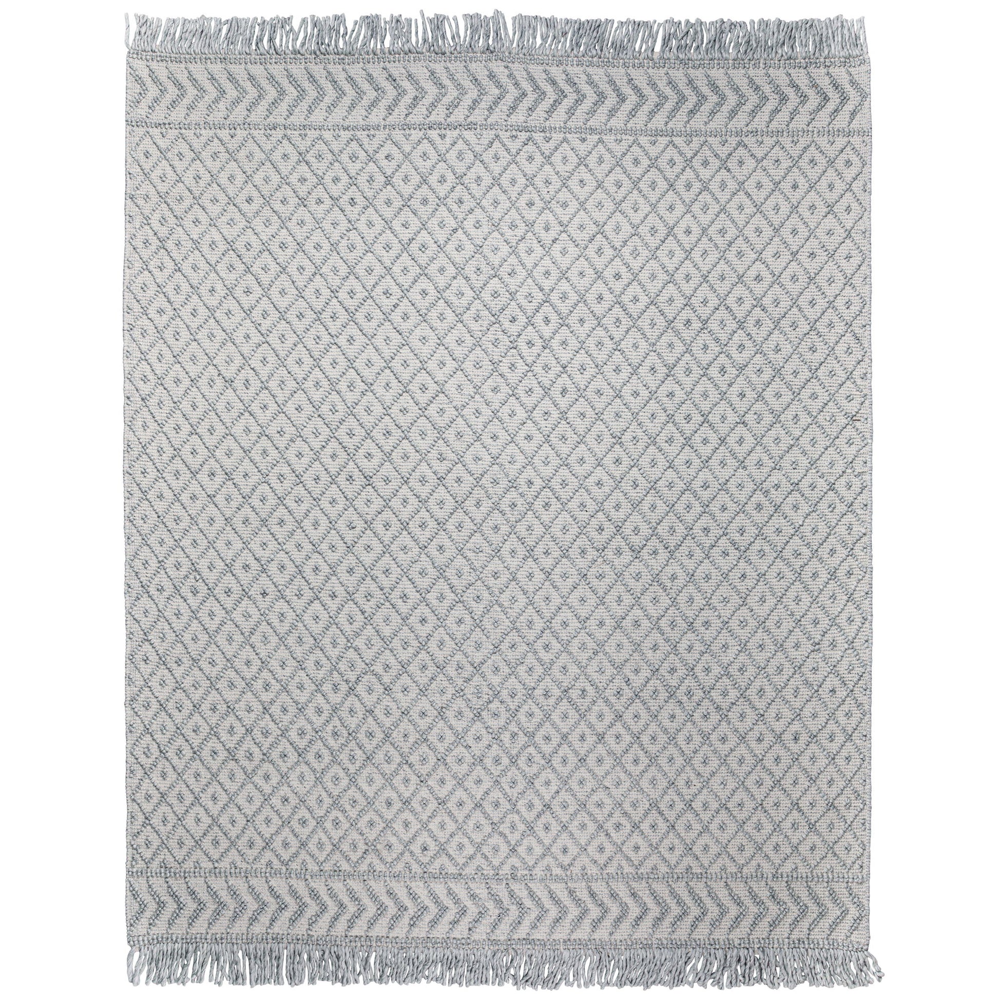 - Detailed with a geometric pattern, featuring a hand-knotted fringe