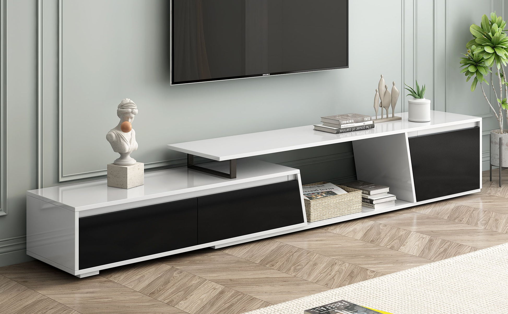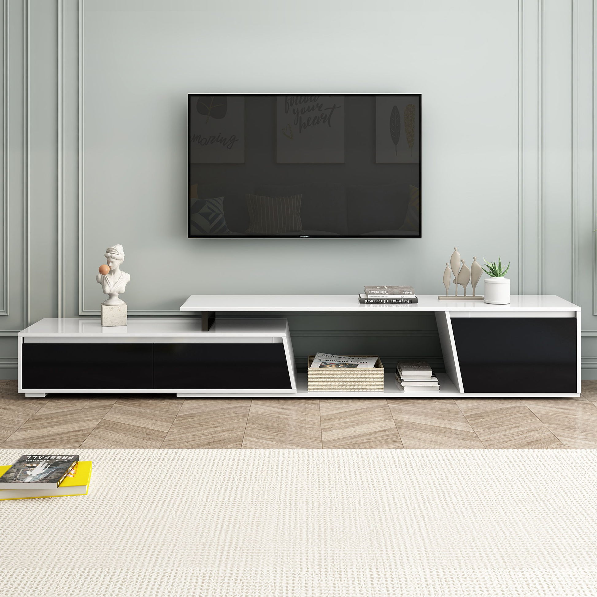 Modern, Minimalist Rectangle Extendable TV Stand, TV Cabinet With 2 Drawers And 1 Cabinet For Living Room, Up To 100" - White70.7"W x 15.7"D x 15.7"H - 96.0 lb