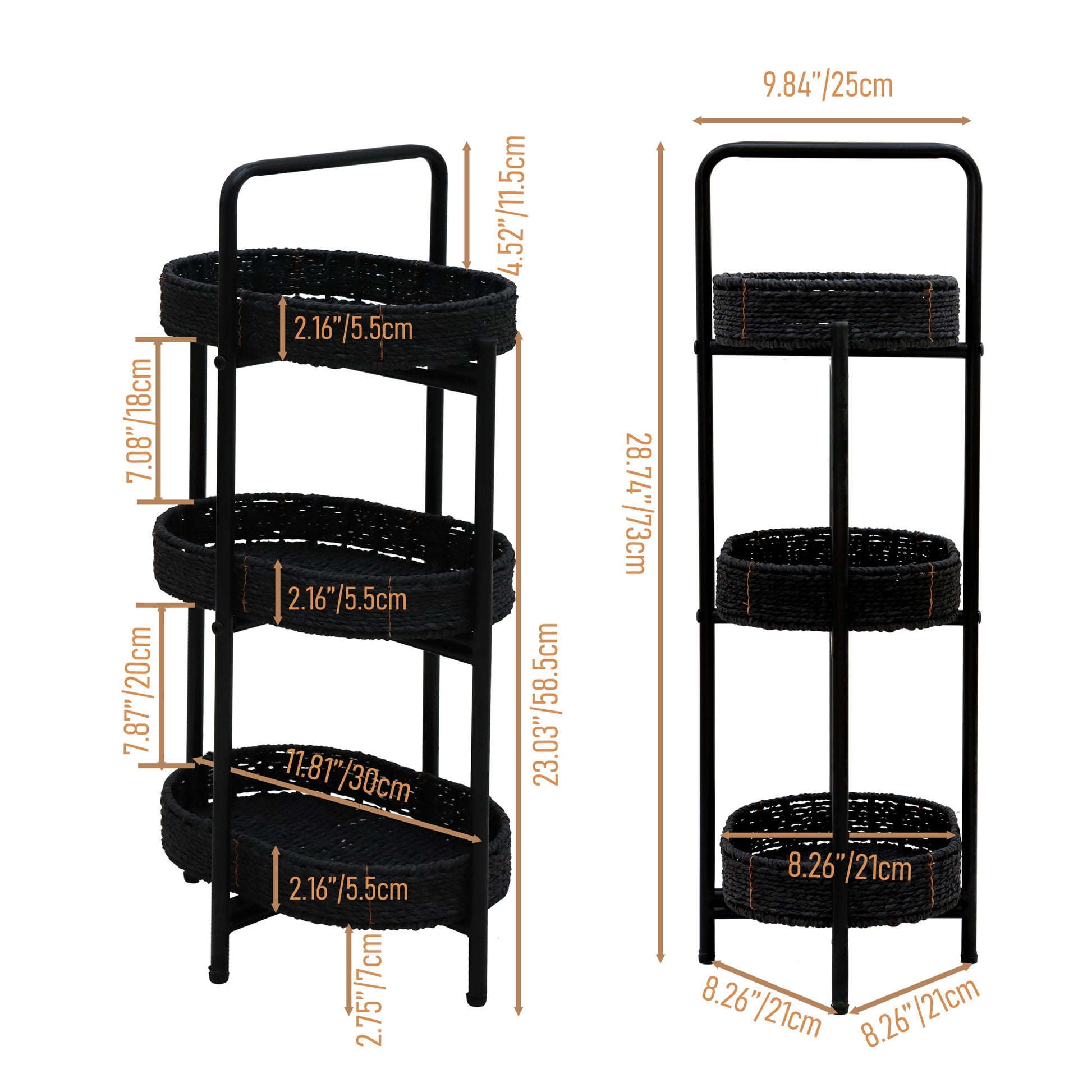 Modern 3 Tier Handwoven Side Table With Oval Organizer In Metal And Paper Rope - Black11.81"W x 8.26"D x 28.74"H - 9.7 lb