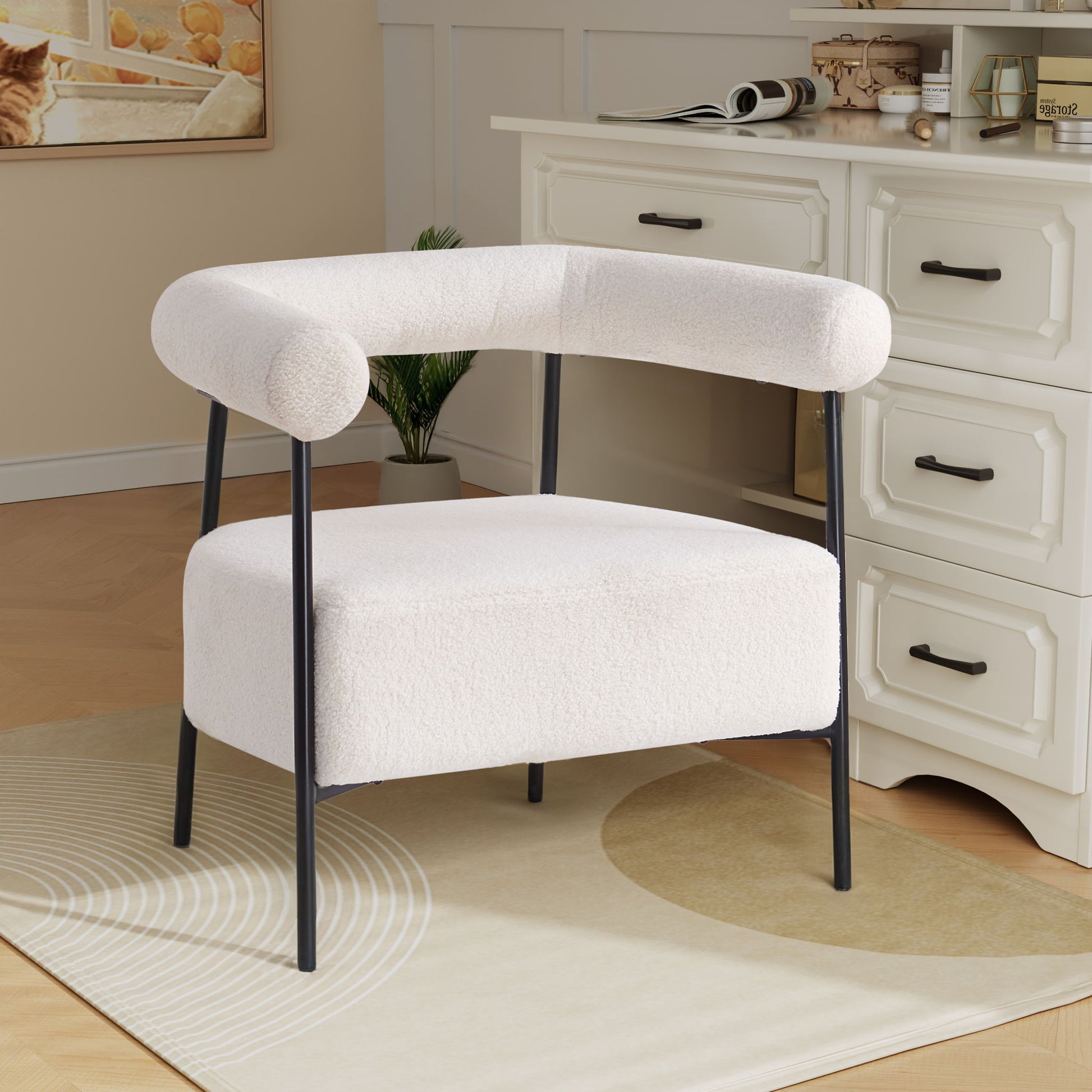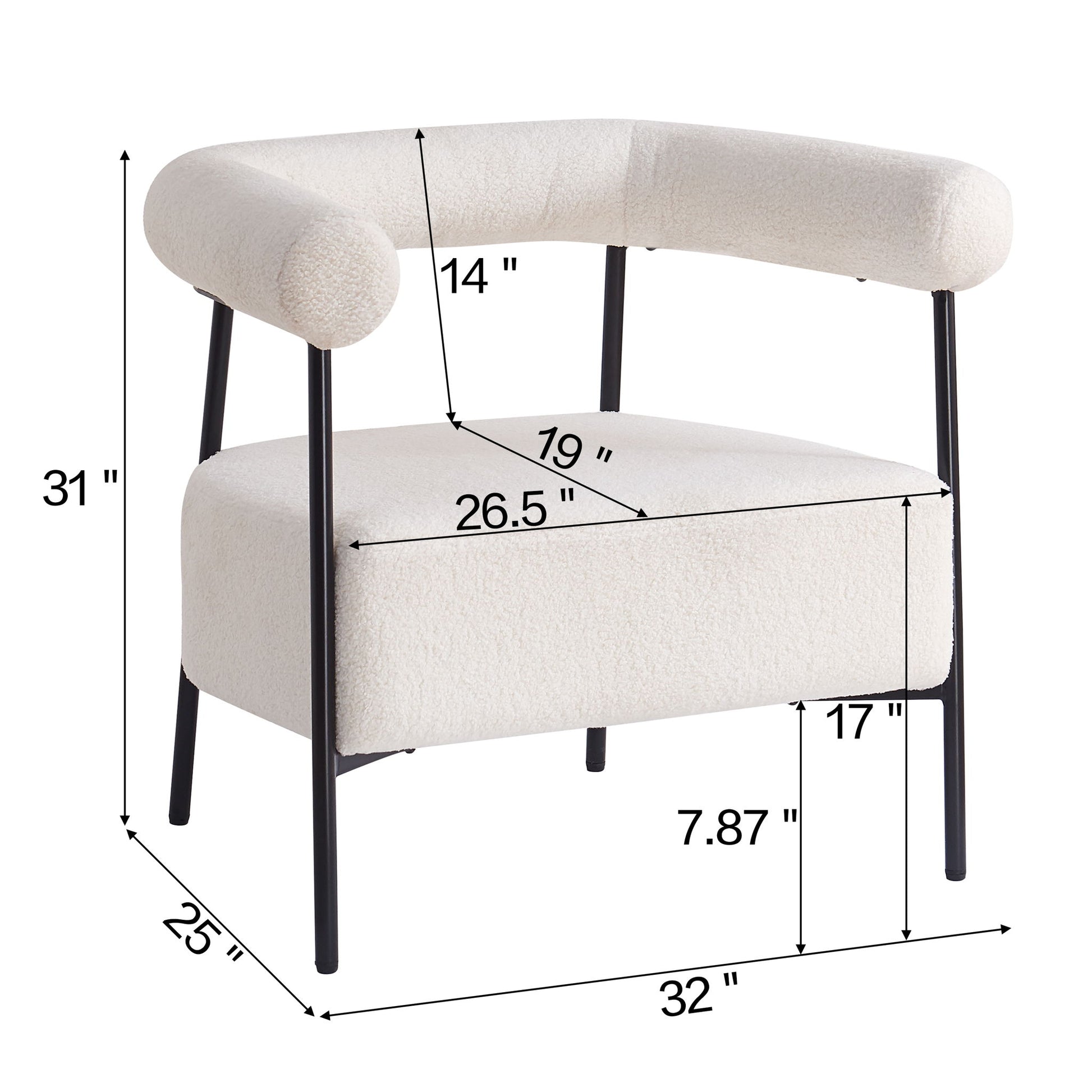Modern Boucle Fabric Upholstered Accent Chair, Curved Armchair With Metal Frame - White25.0"W x 32.0"D x 31.0"H - 21.72 lb
