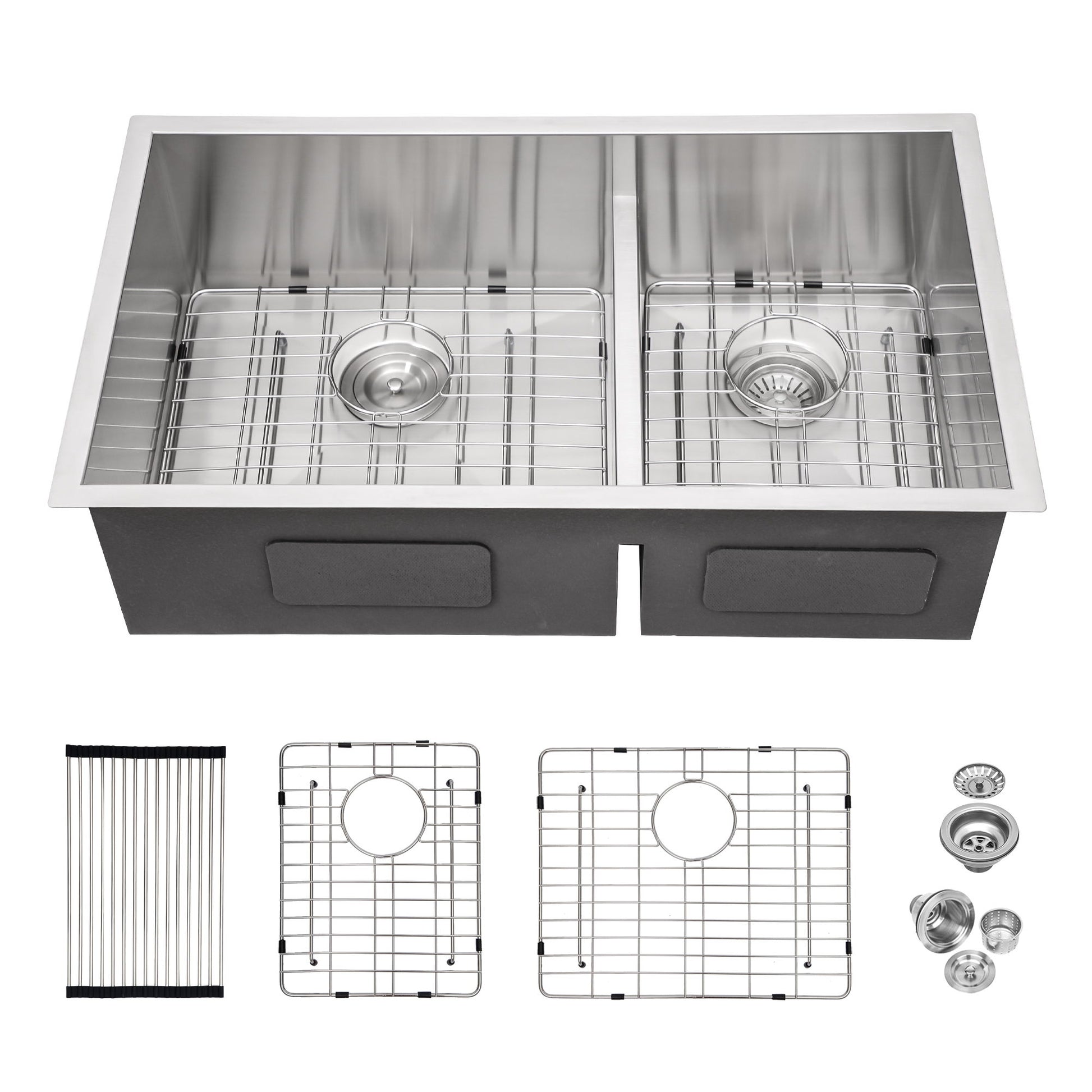 Double Bowl Undermount Kitchen Sink 33" X 19" With 16 Gauge And Deep Basins - Brushed Nickel33.0"W x 19.0"D x 10.0"H - 36.6 lb