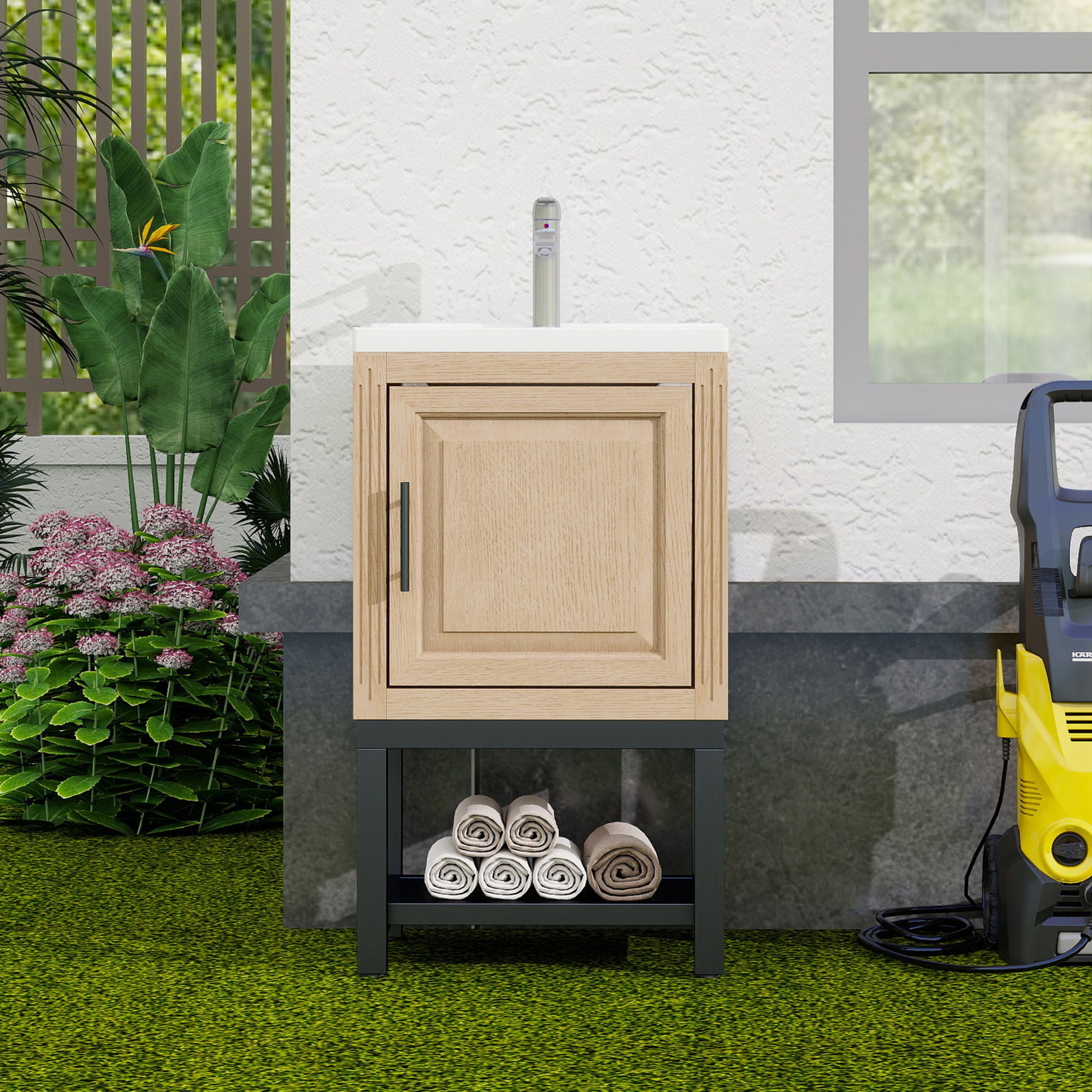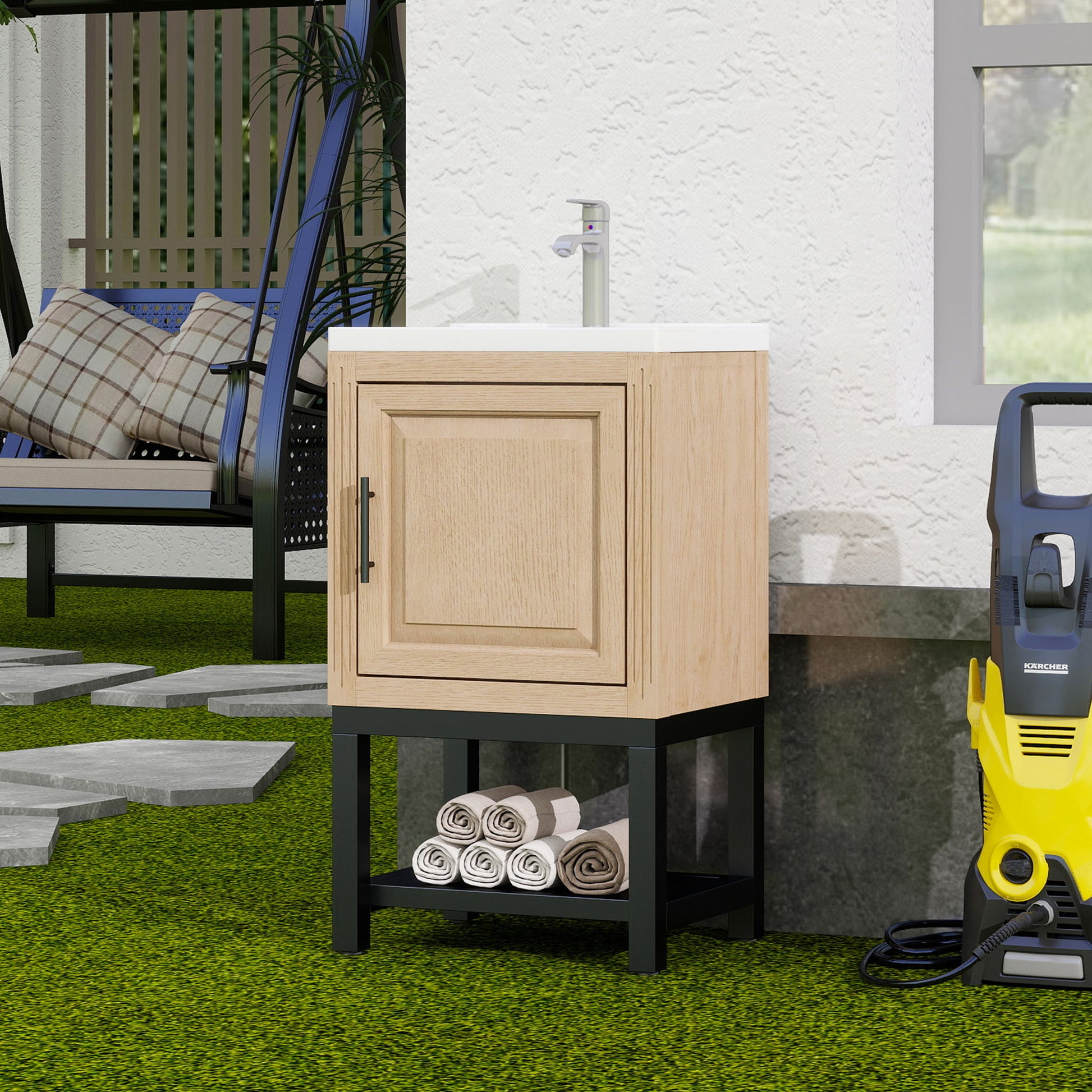 Modern Freestanding Bathroom Vanity With Ceramic Sink, Hot And Cold Faucet, 1 Door Cabinet & Open Iron Shelf, Magnesium Oxide And Iron Frame - Natural19.8"W x 14.33"D x 34.88"H - 65.26 lb