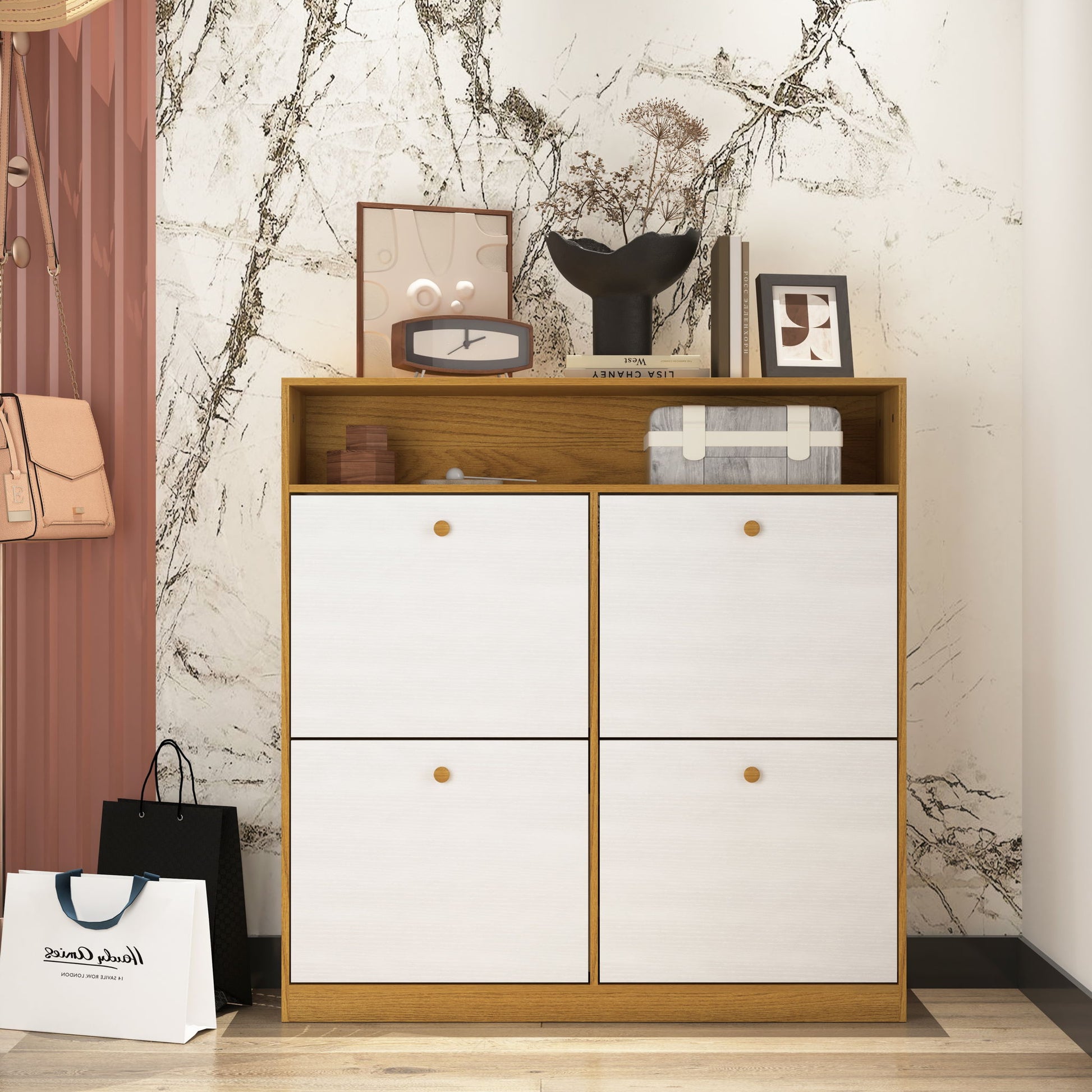 Shoe Storage Cabinet With 4 Flip Drawers And Wooden Handle For Entryway - Natural39.37"W x 9.45"D x 39.37"H - 60.6 lb