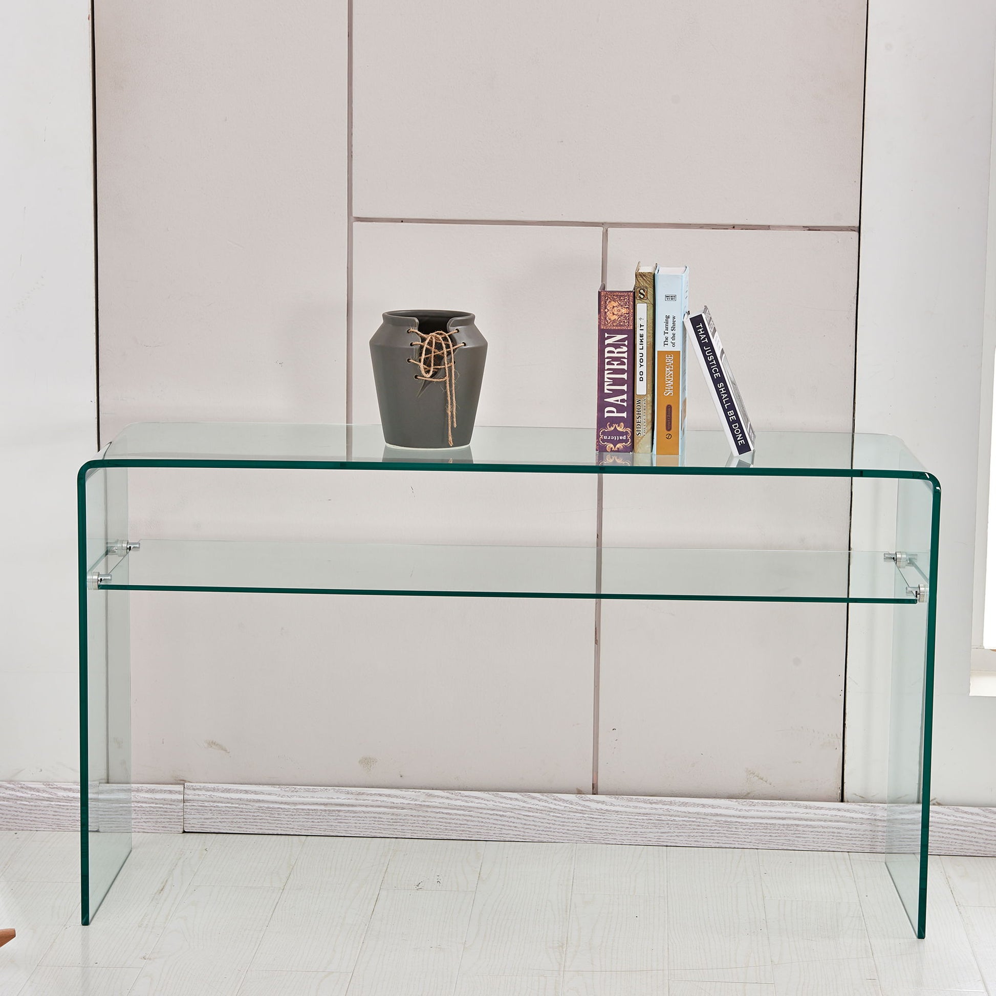 Modern Glass Console Table With Rounded Edges For Versatile Use Tempered Glass - Clear