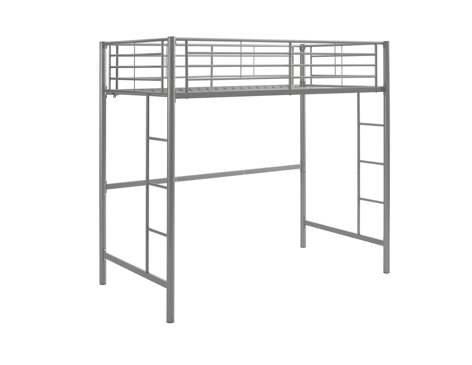 Modern Industrial Twin Over Loft Metal Bunk Bed Frame With Integrated Guardrails - Silver