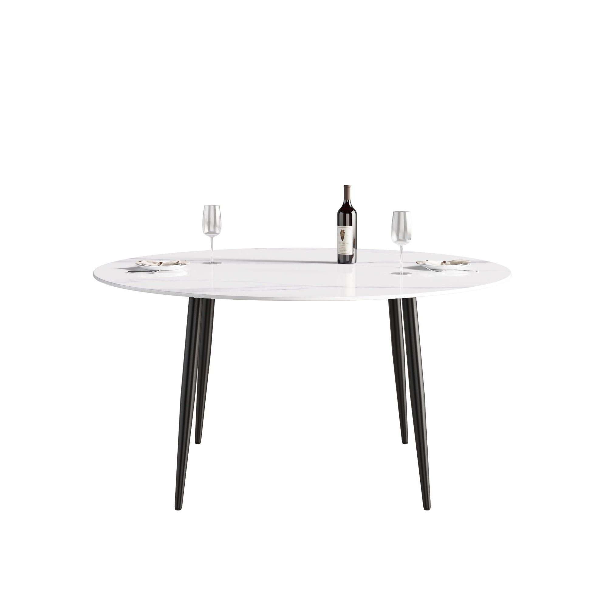 59.05" Modern Man-Made Stone Round Metal Dining Table-Position For 6 People - White / Black59.05"W x 59.05"D x 29.53"H