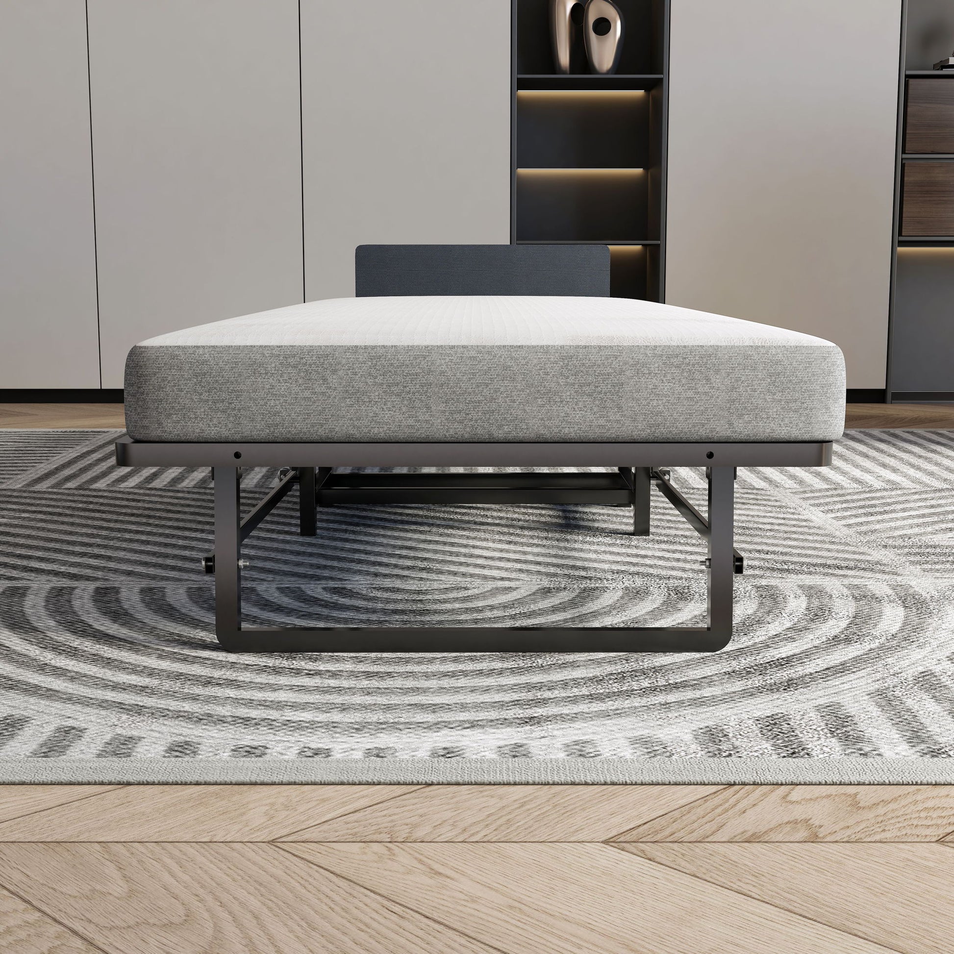 Modern Metal Folding Bed Frame With Foam Mattress, Easy Storage & Mobility - Black30.8"W x 75.1"D x 19.1"H - 47.5 lb