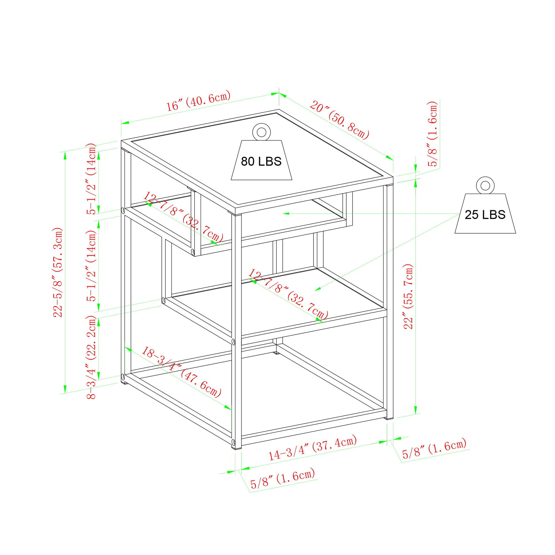 • Sleek, contemporary design Perfect for your urban or modern home Two floating, fixed shelves for additional display space Made with powder-coated steel, warp-resistant MDF, and durable laminate Display in your room, living room, or home office Pair with the matching coffee table and entry console Quick and easy assembly Ships ready-to-assemble with step-by-step instructions