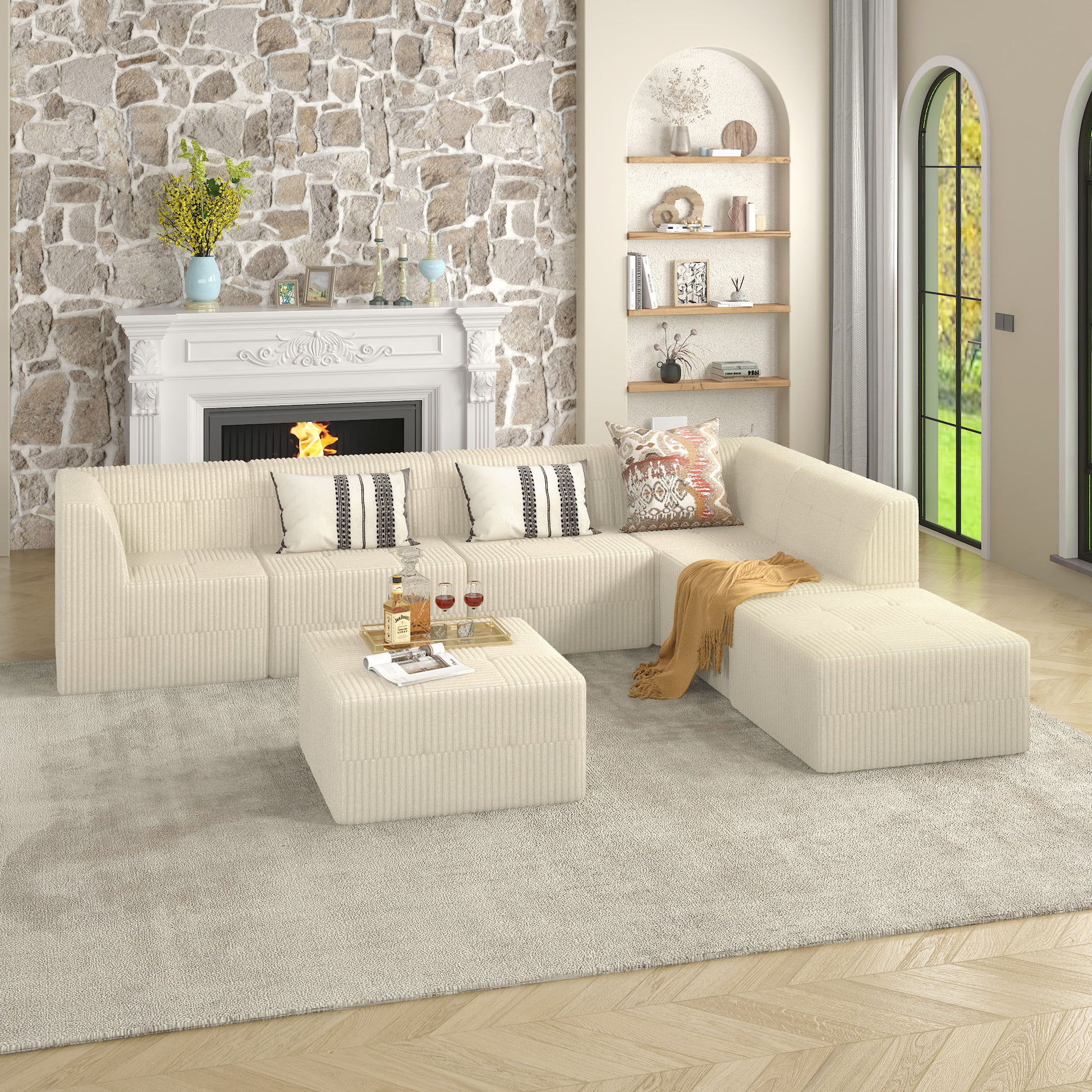 Modern Minimalist Ottoman Sofa Compressed Sectional Corduroy Couch Sleeper