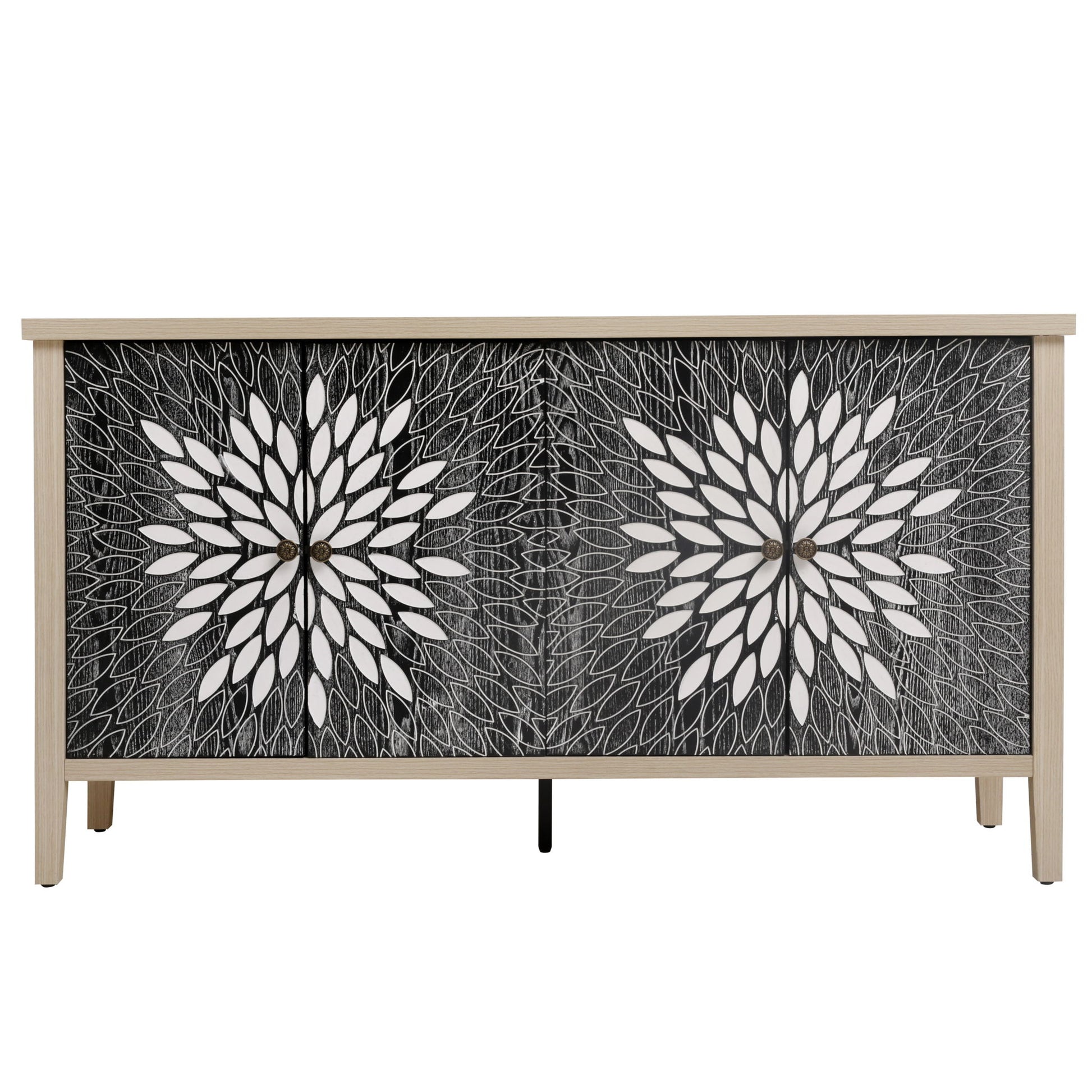 Sideboard Buffet Cabinet, Storage Cabinet With Storage, Modern Storage Cabinet With 4 Doors & Adjustable Shelves For Living Room, Dining Room, Kitchen And Entryway - Black / Natural58.11"W x 15.75"D x 31.69"H - 78.93 lb