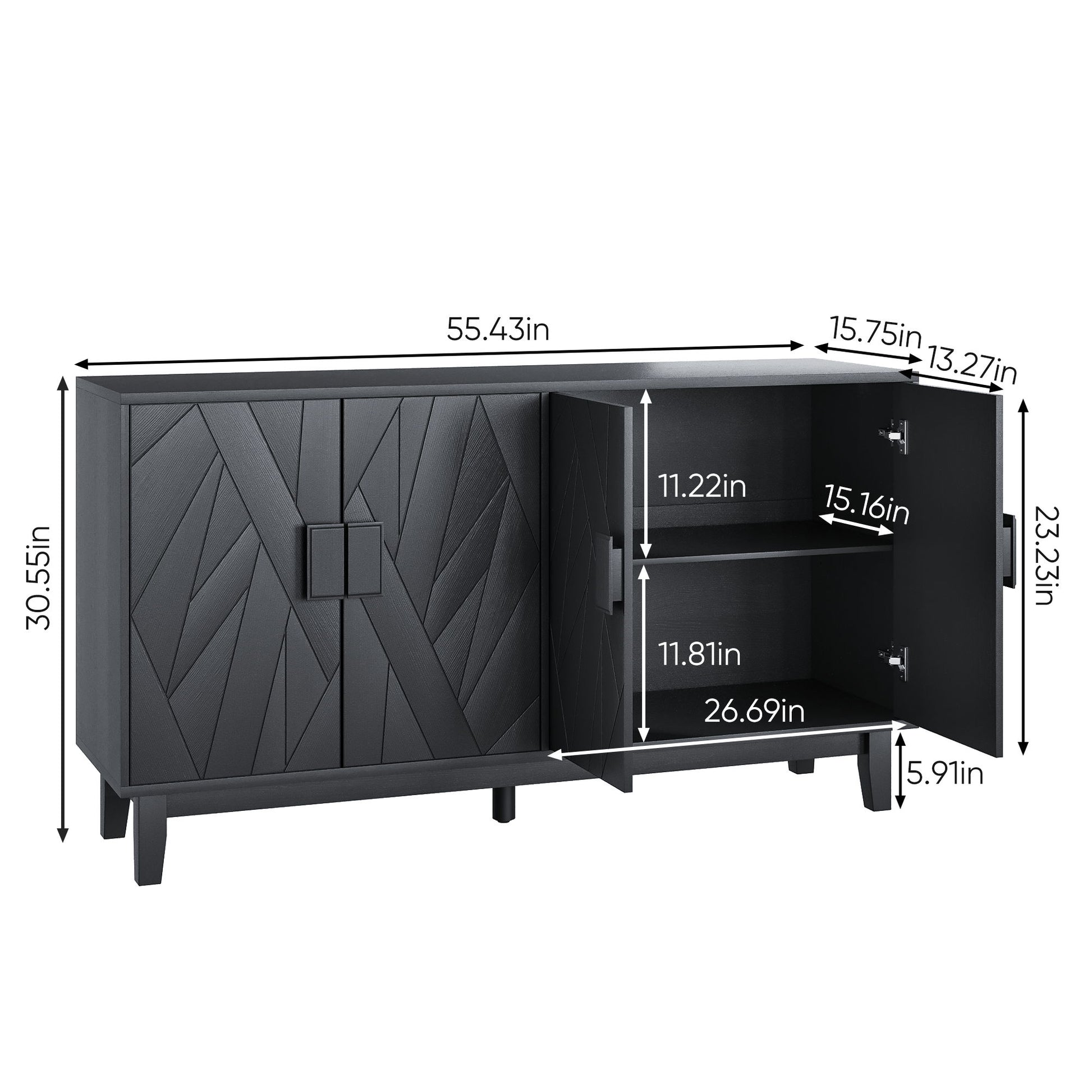 Modern Style Buffet Cabinet, Storage Side Cabinet Buffet Cabinet, Medieval Modern Multifunctional Decorative Cabinet Suitable For Living Room, Dining Room, Entrance, Corridor, Kitchen - Black55.43"W x 15.75"D x 30.55"H - 86.35 lb