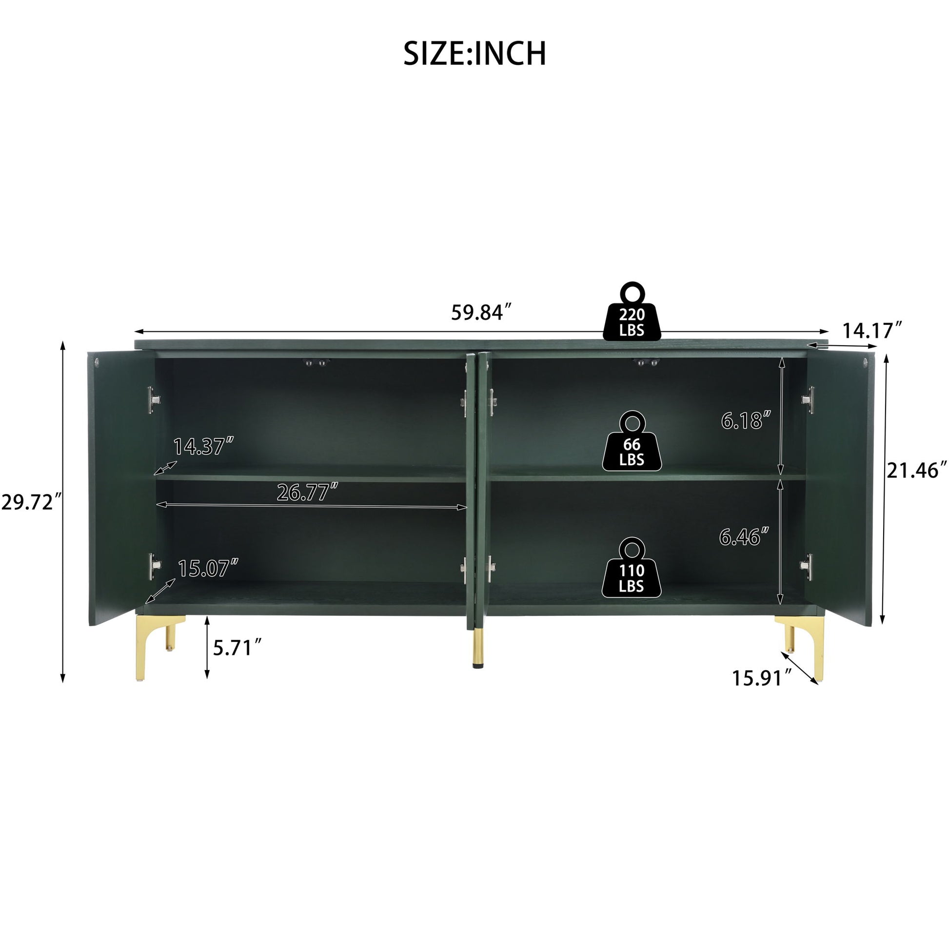Modern Light Luxury Style Large Storage Space Sideboard With 4 Doors And Rebound Device - Olive Green59.84"W x 15.91"D x 29.72"H - 70.18 lb
