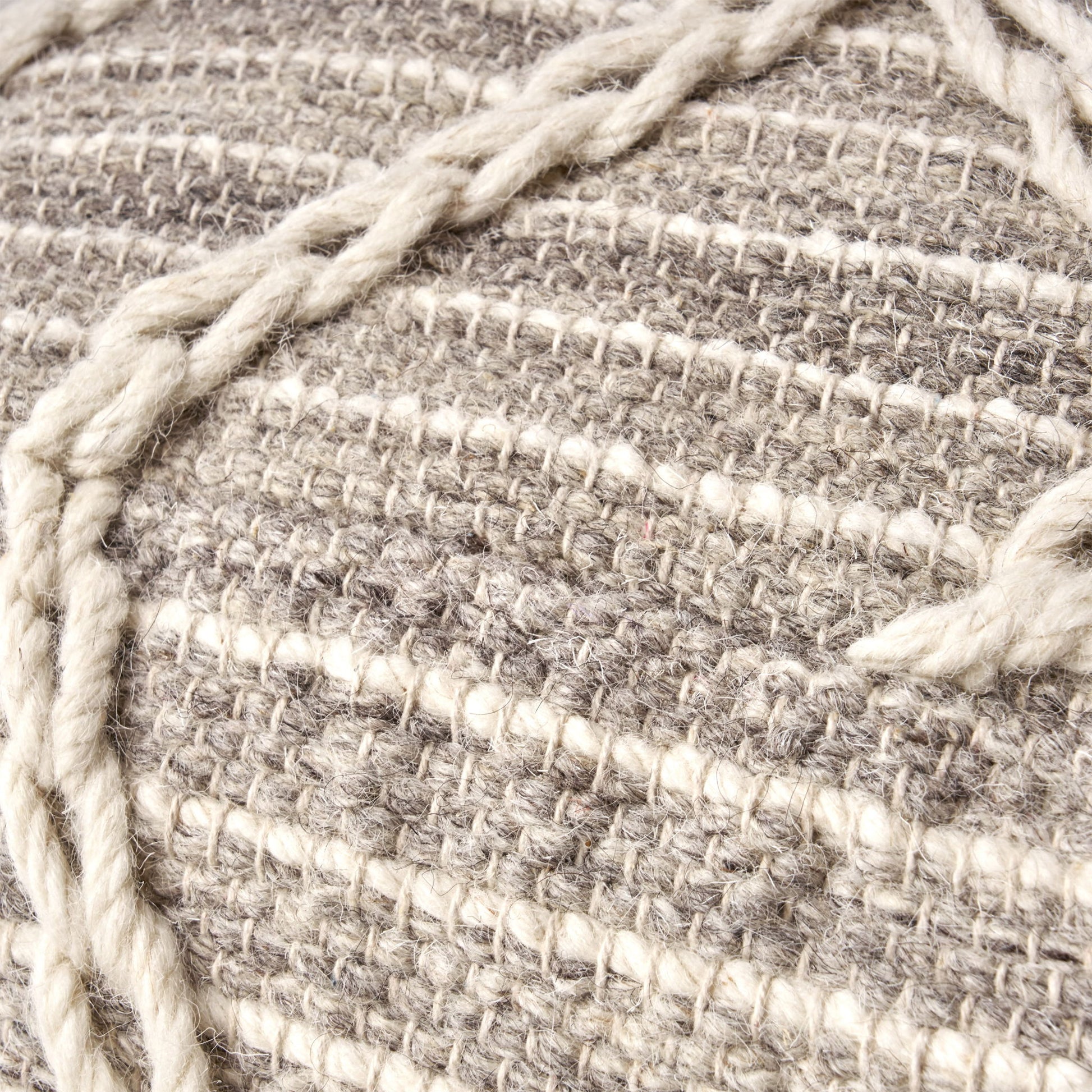 Modern Wool Rope Square Pouf Ottoman Floor Cushion - Gray / Ivory