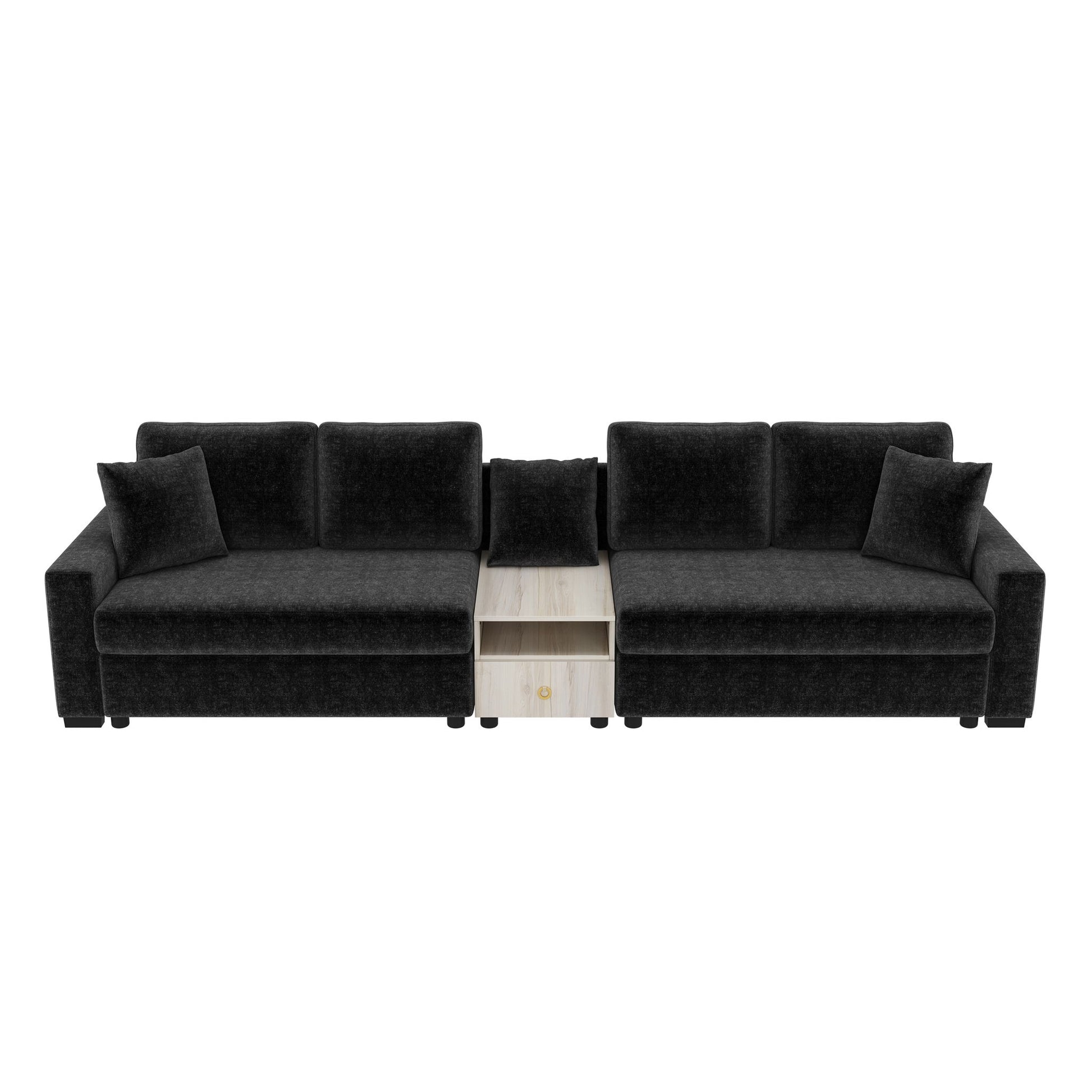 3 Seater Modular Sofa Couch With Storage Armrest And Center Console - Black111.8"W x 31.1"D x 32.3"H - 188.5 lb