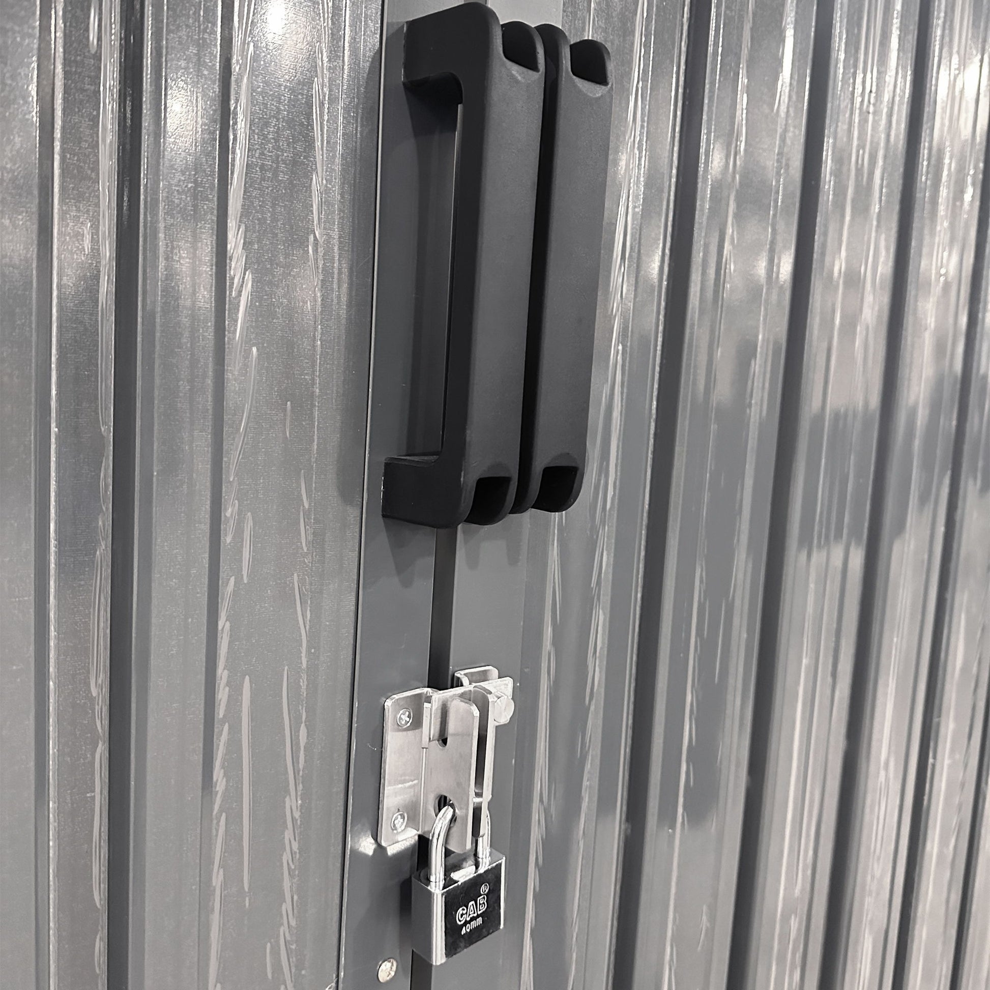 Convenient Access: Features a hinged front double door and side door for easy entry, with lock holes for added security.