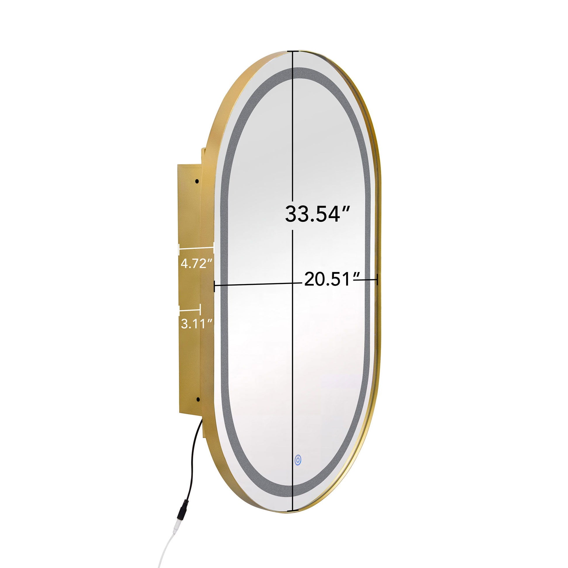 Oval Medicine Cabinet Mirror Bathroom Mirror With Storage Wall Mounted Medicine Mirror Cabinet With LED - Golden33.54"W x 20.51"D x 4.72"H - 22.93 lb
