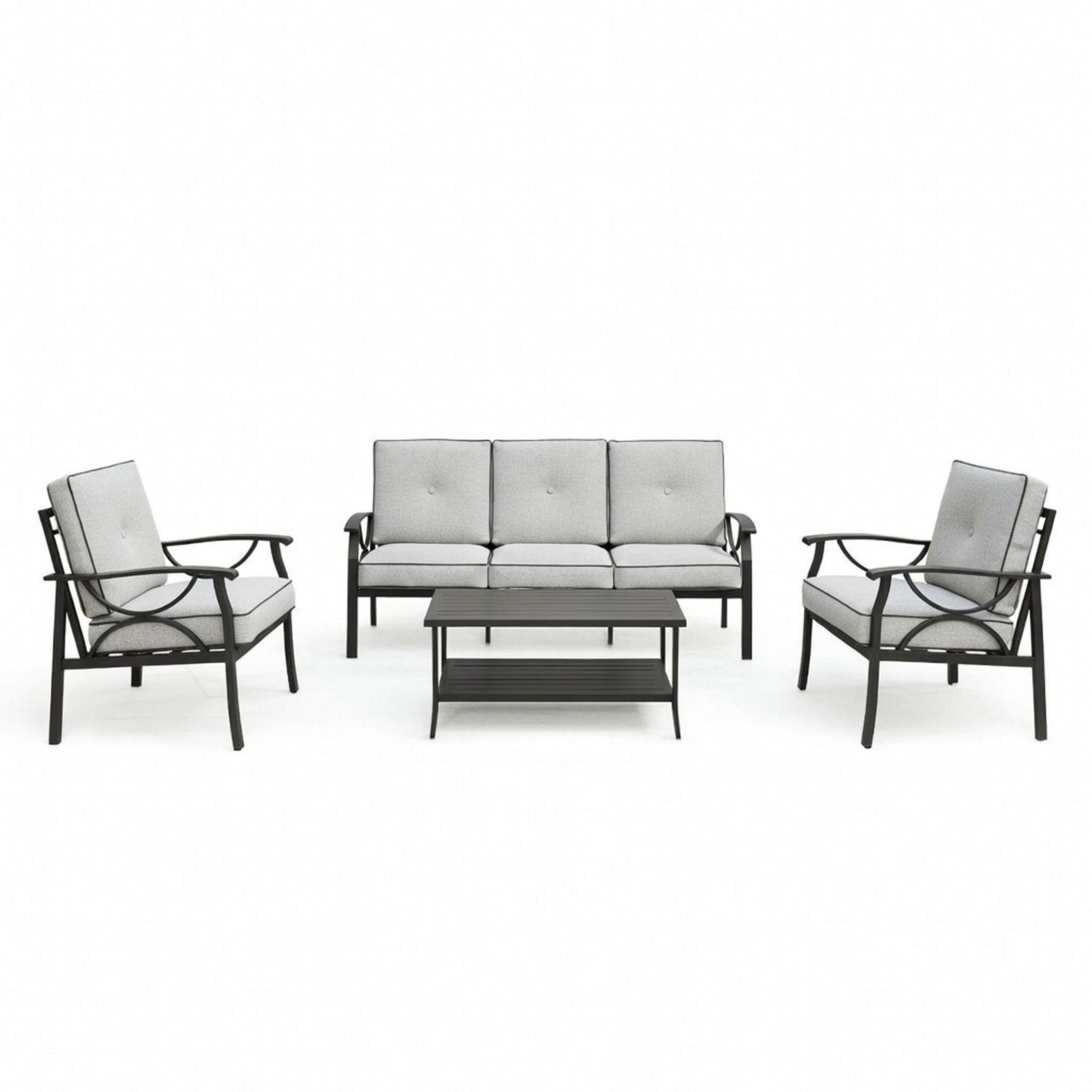 4 Piece Patio Furniture Set With Thick Cushions Frame, Coffee Table For Backyard - Gray / Black