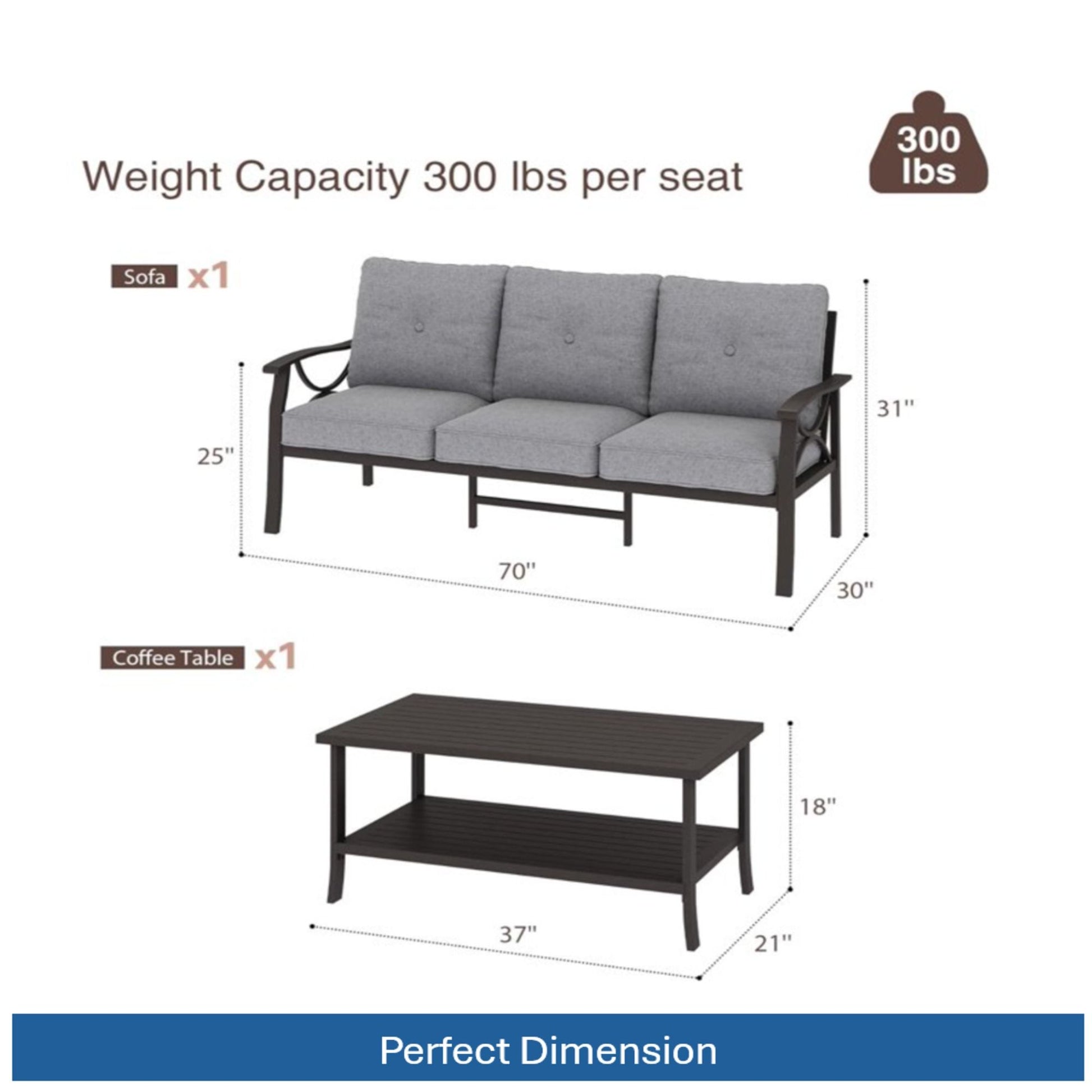 3 Piece Patio Furniture Set With Thick Cushions, Coffee Table For Backyard - Gray