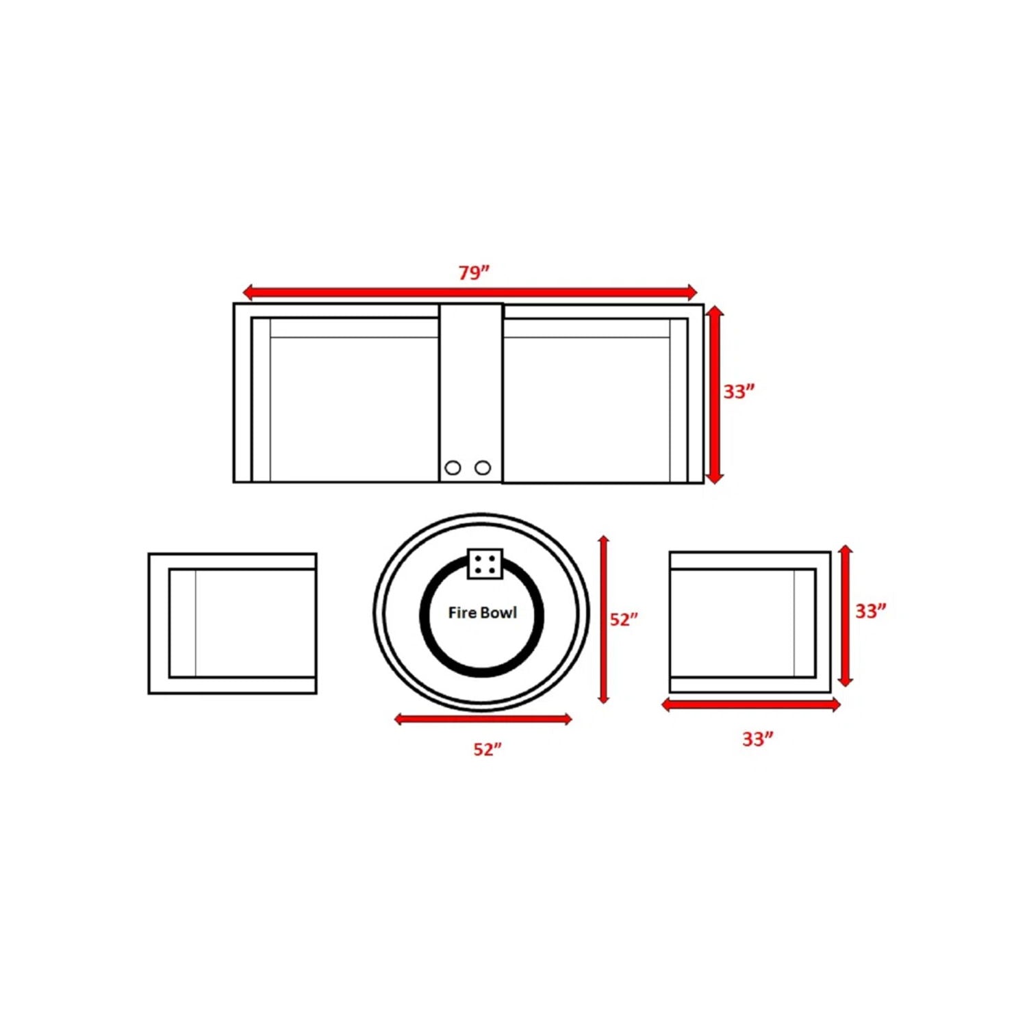 Spacious 52 Fire Pit Table: Square design with a 25 height, providing plenty of space for dining, drinks, and gatherings.