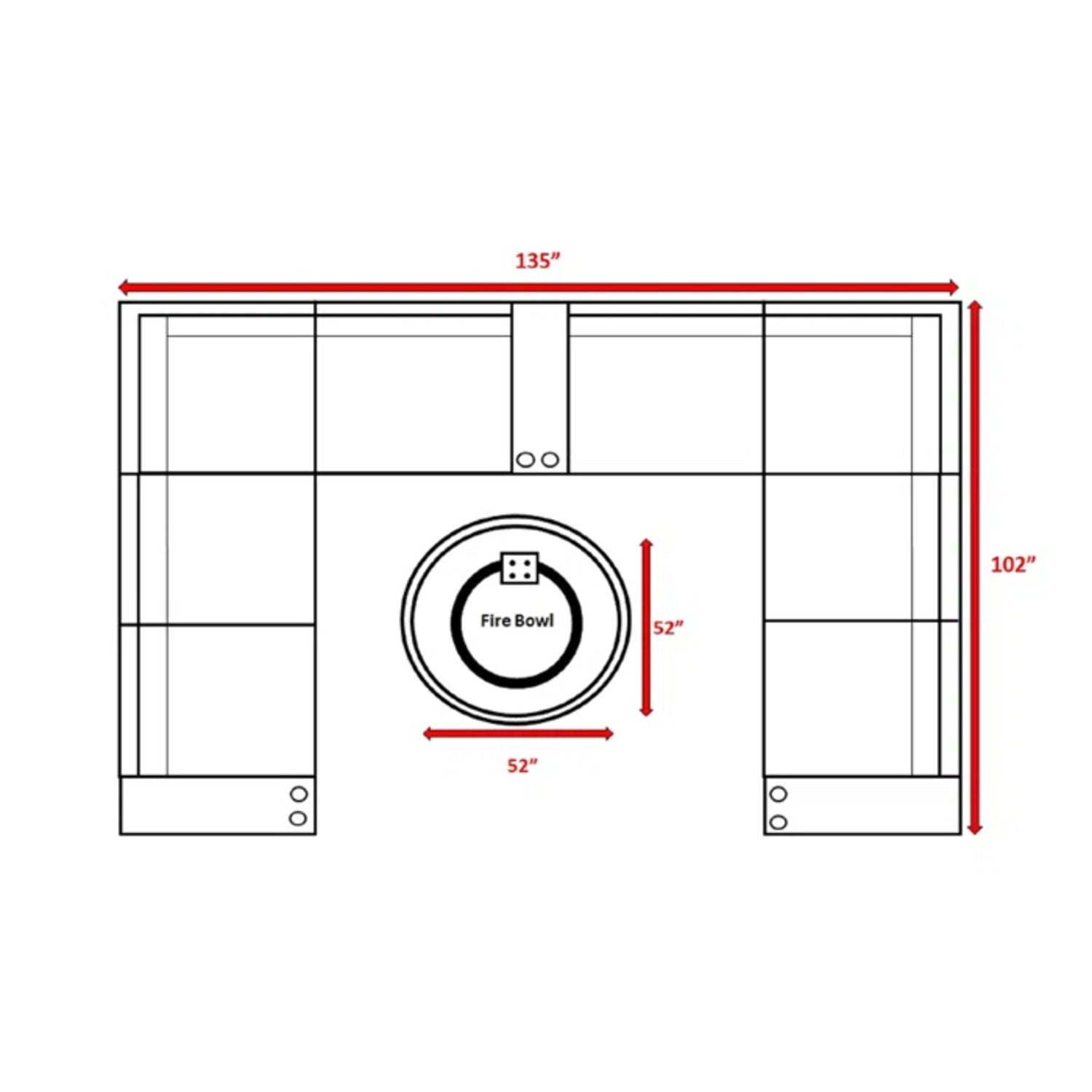 Complete Outdoor Set: 12-piece group includes 2 modular sectionals, 1 sofa, fire pit, and 18 thick cushions.