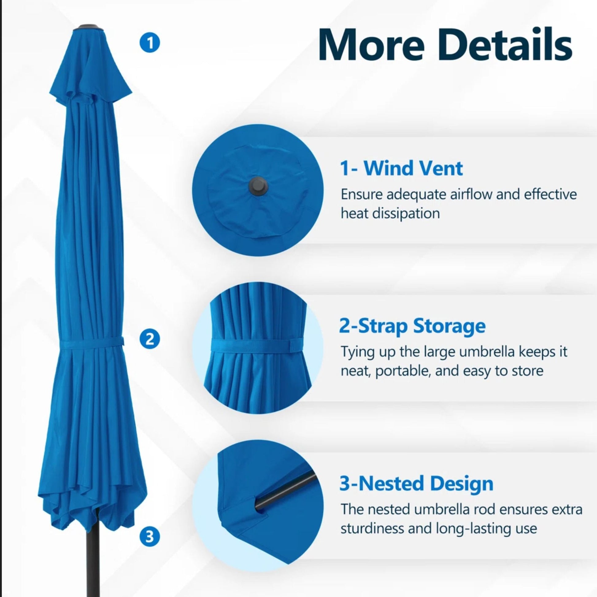 Market Patio Umbrella With Crank Lift And Tilt Ribs, UV Resistant Canopy For Pool - Blue156.0"W x 156.0"D x 108.0"H - 24.0 lb