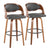 Pino - Mid-Century Modern Fixed Height Barstool With Swivel & Round Footrest (Set of 2) - Walnut / Gray22.0"W x 22.0"D x 40.5"H - 16.5 lb