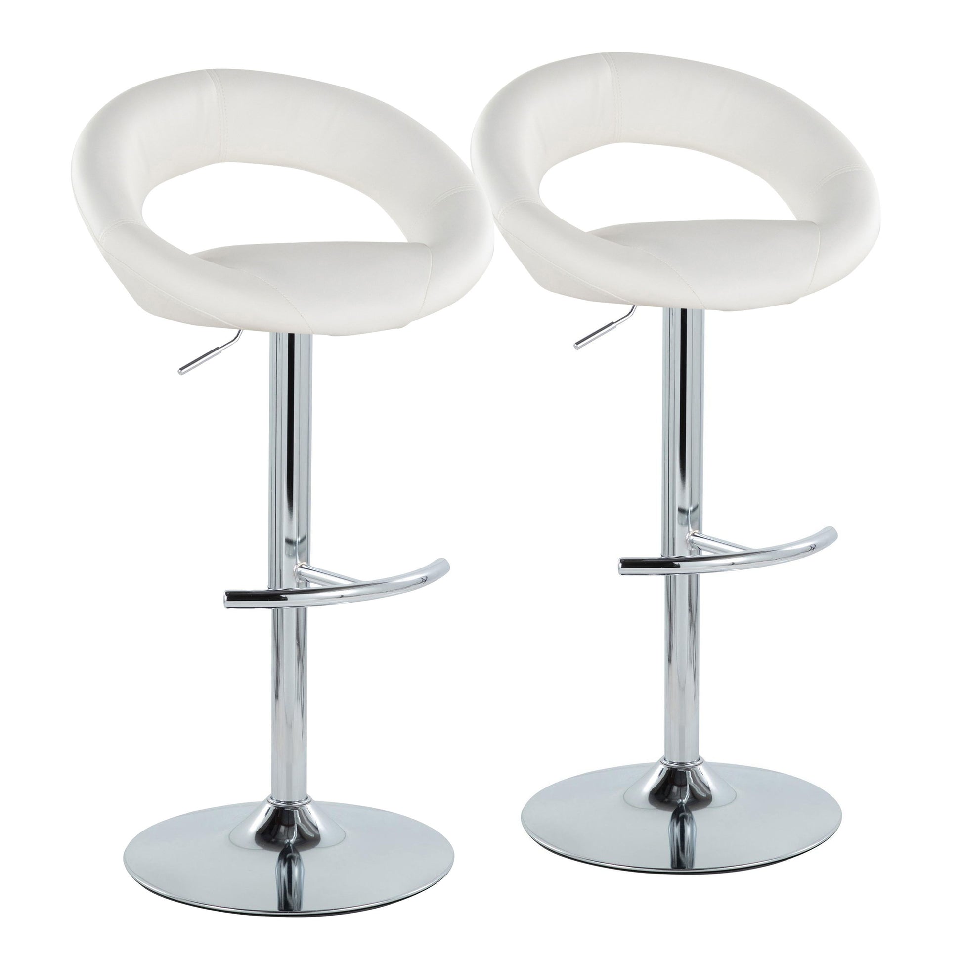 Posh - Contemporary Adjustable Barstool With Swivel With Rounded T Footrest (Set of 2) - Chrome / White18.5"W x 21.0"D x 41.0"H - 16.0 lb